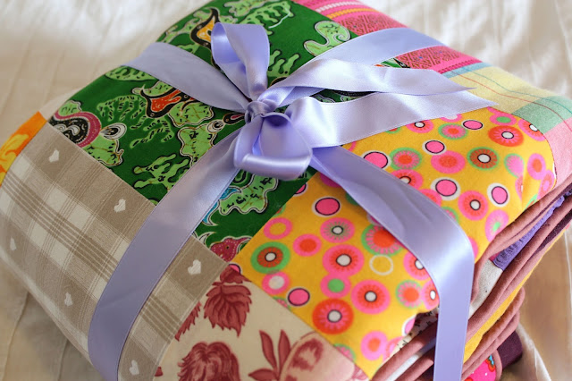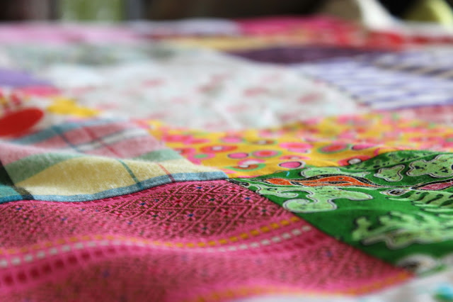 Une couverture aux cent Voeux. Cent morceaux de tissus, cent messages d’amour symboliquement assemblés…