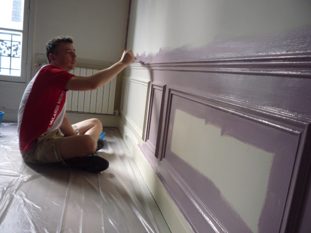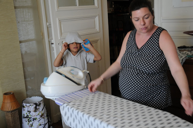 Rod s’est donné beaucoup de mal pour peindre les meubles ikéa… j’ai fini les rideaux à 4 jours de l’accouchement !