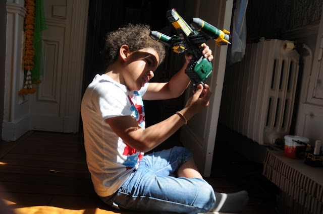 Sacha a 6 ans et demi, oui madame, Sacha est taillé dans un roc, tant il est trapu, tout en muscle, Sacha a de grandes mains, Sacha a de gros pieds ! Sacha a des yeux comme personne, sombre et lumineux, Sacha est a six ans comme il était à six minutes avec ses longs cils et ses jolis sourcils dessinés, sa bouche pleine et ourlée. Sacha a toujours quelque chose dans la main, un jouet, titi son doudou…