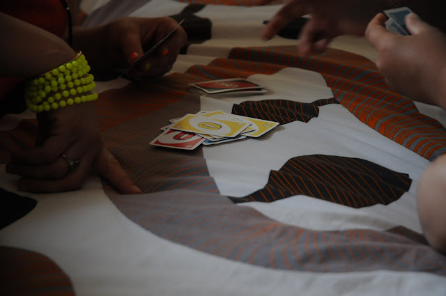 Une partie de Uno, à crier « UNO » plus fort et plus vite que lui…