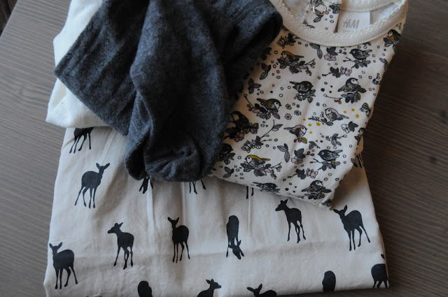 11:00 petit tour dans les rayons d’H et M, et soudain la trouvaille, au milieu des pyjamas hello Kitty, une petite robe biche, un body à piafs et des collants tout doux… H et M je t’aime tu sais?