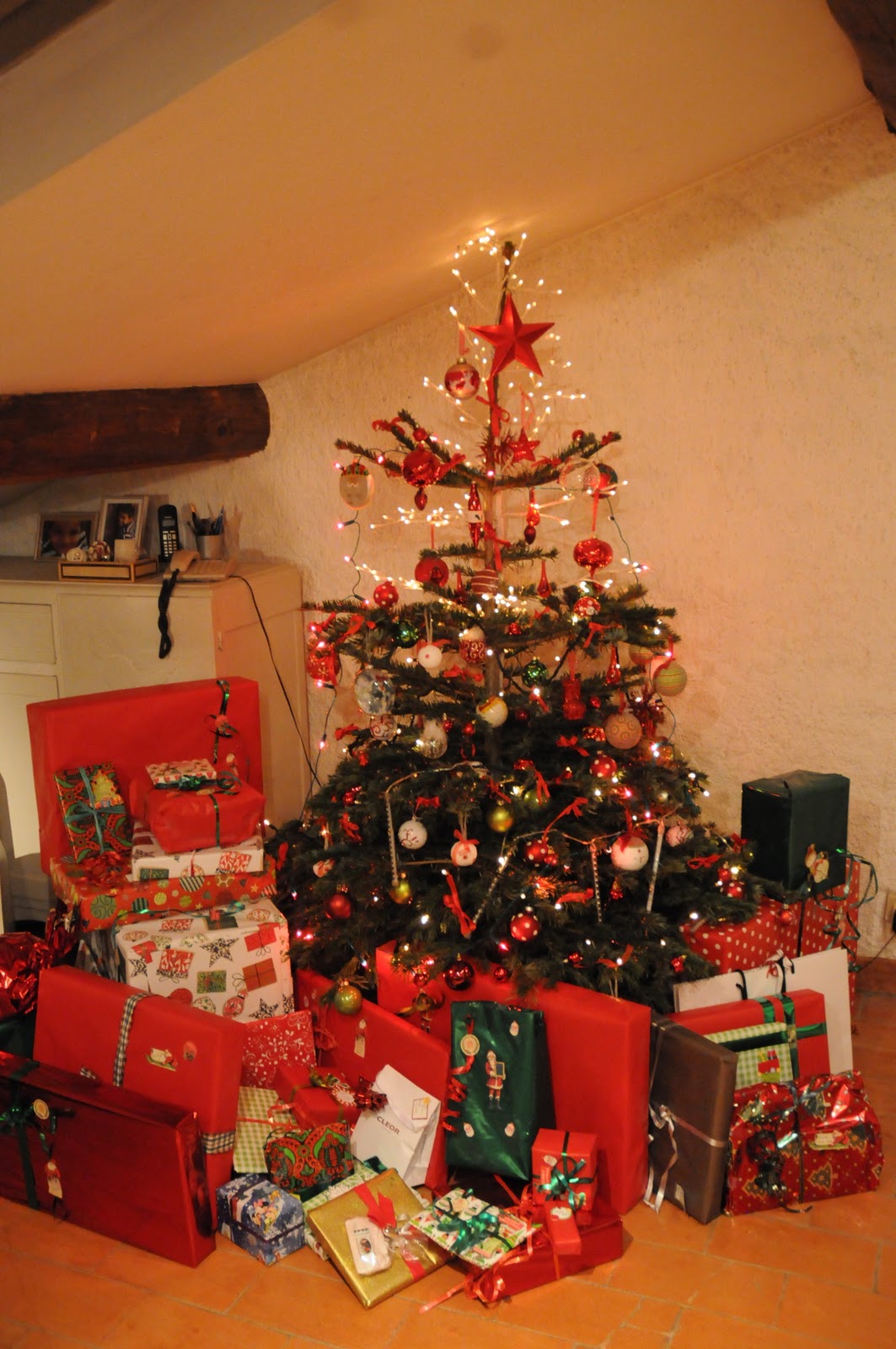 La déco est à tomber…et tu es belle comme tout en mère Noël!
