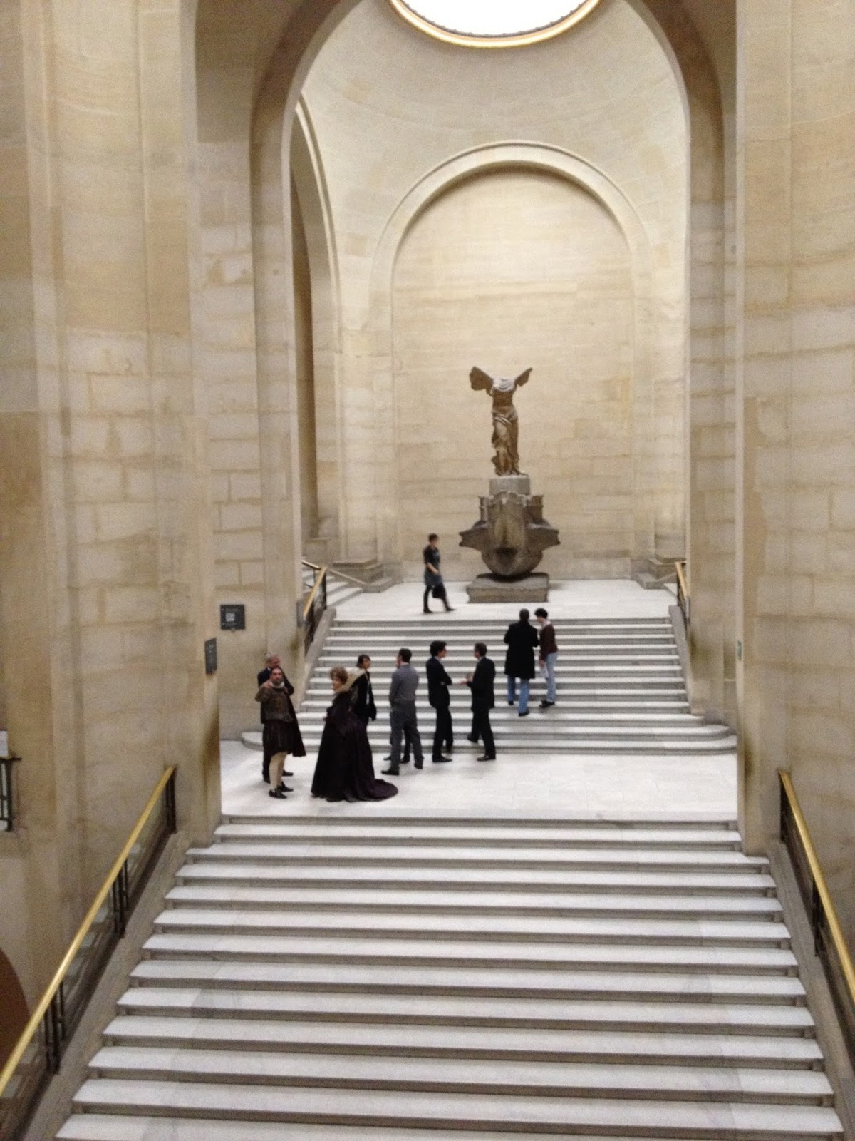 J’ai bossé mardi dernier pour un gros (GROS) patron qui présentait ses voeux au Louvre. Une cinquantaine de comédiens,de danseurs et de musiciens à habiller, Henri IV, Louis XIV, Marie de Médicis, Belphégor, La Joconde, DeVinci… Le Louvre privatisé pour une soirée… après un gros boulot d’habillage, nous nous sommes baladées dans les salles quasi vides… VIDES!