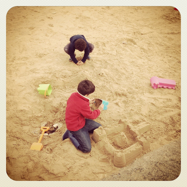 Le sable dans les revers des pantalons et dans les bottes de pluies, les châteaux, les pelles, les marinières, les gaufres.