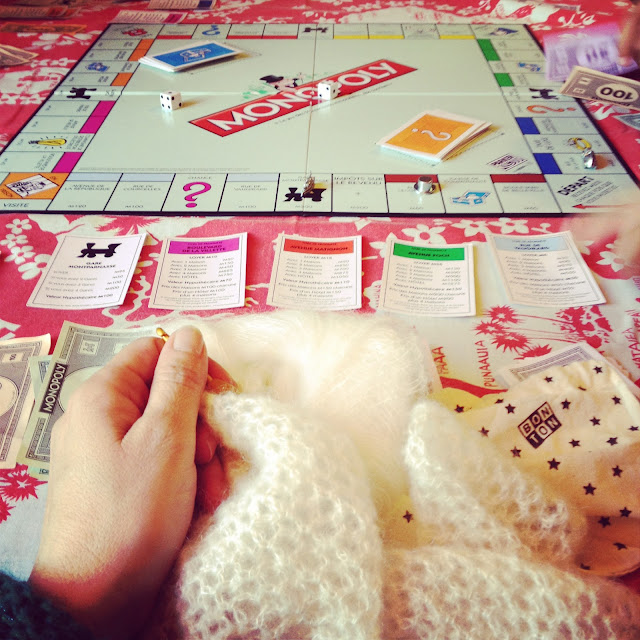 Un foulard au crochet qui n’en finit pas de ne pas finir, du Monoply, des bières, des huitres et du préfou (si tu connais pas le préfou, tu rates un truc).