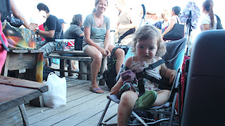 Ta fille ne sourira pas à chaque coup t’as compris, là elle poireaute pour prendre un bateau et elle a chaud.