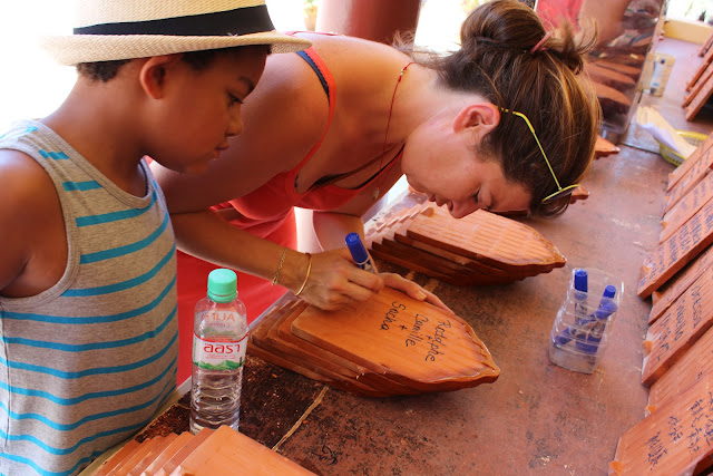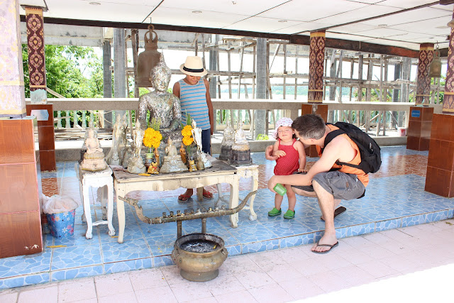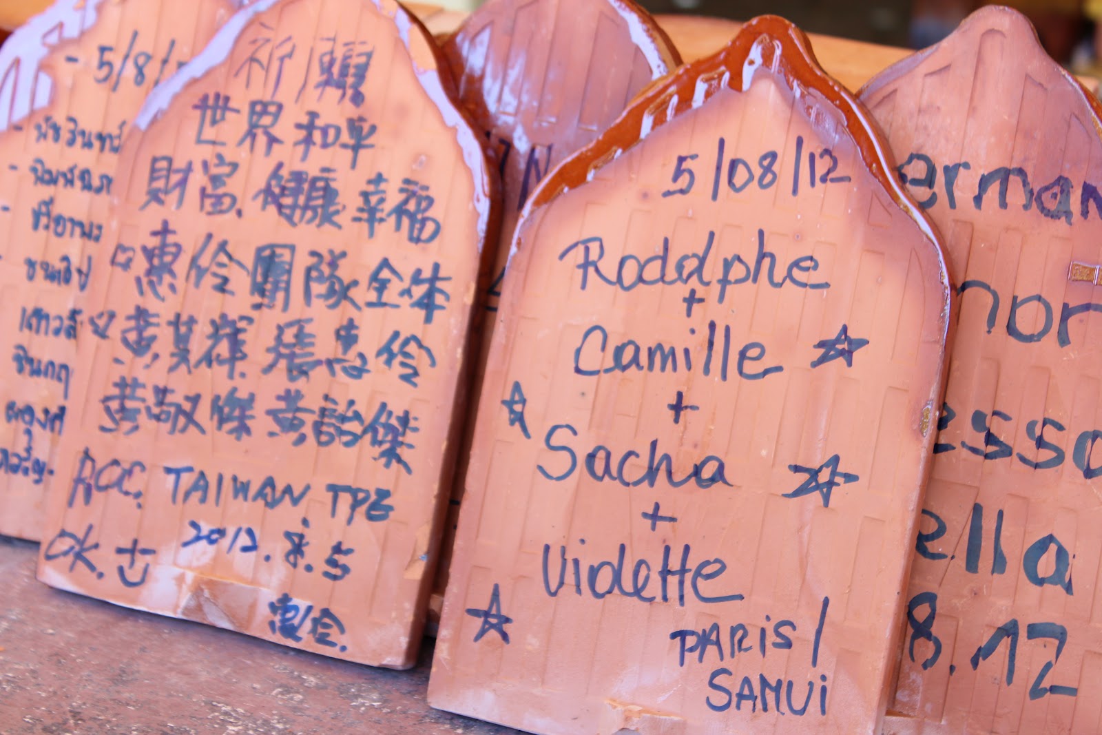 Nous ne sommes pas restés longtemps, puis que nous l’avons pas mal visité il y a deux ans, mais Sacha voulais retourner voir le Big Bouddha. Ça a été aussi l’occasion de mettre nos noms sur une tuile qui servira à construire le toit d’un temple. Il y a deux ans, alors que j’étais enceinte de la Violette on avait écrit, Camille Rodolphe Sacha et… BB ! Clin d’oeil !