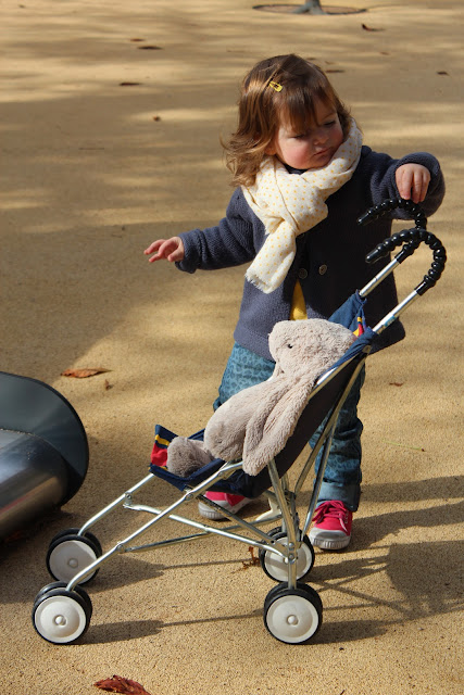 Violette a grogné, tapé du pied, joué du coude… elle a défendu comme une lionne son lapin et sa poussette chérie.