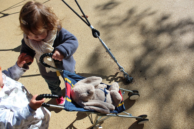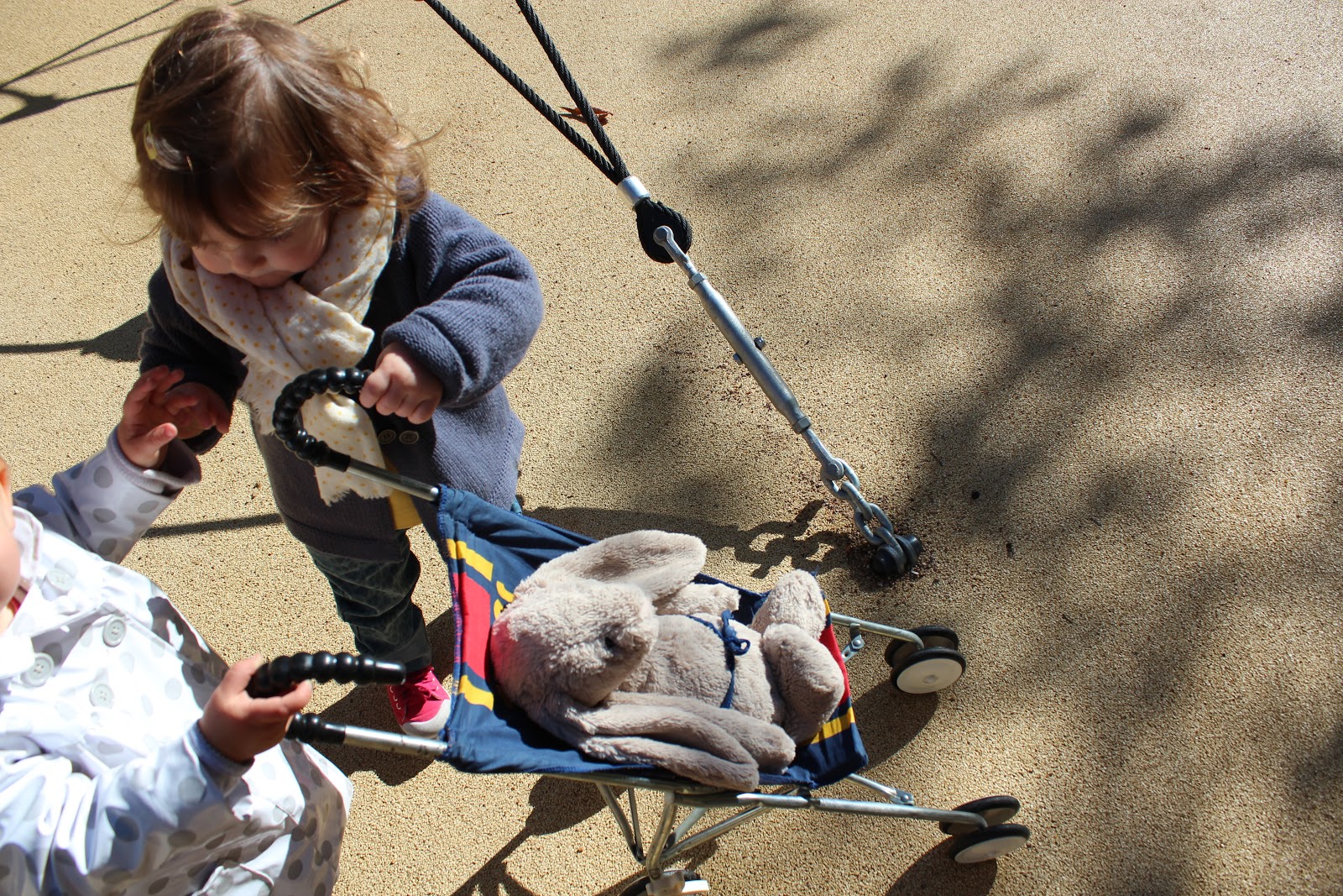 Violette a grogné, tapé du pied, joué du coude… elle a défendu comme une lionne son lapin et sa poussette chérie.