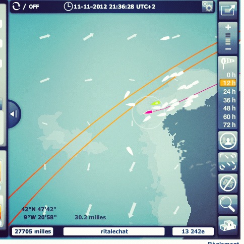 Et puis se connecter trèèèèès souvent à Virtual Regatta, on a attendu quatre ans avec Rod que le Vendée Globe reparte, alors nous on est comme des oufs avec nos bateaux virtuels! (je suis devant lui ! je suis devant lui !!!le petit bateau rose c’est moi, ritalechat)