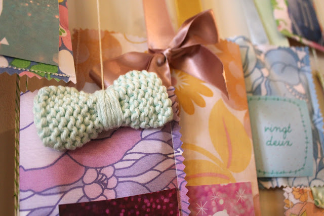 il a suffit de rajouter des pompons, des pinces à linges, et les petits noeuds tricotés que je gardais précieusement !