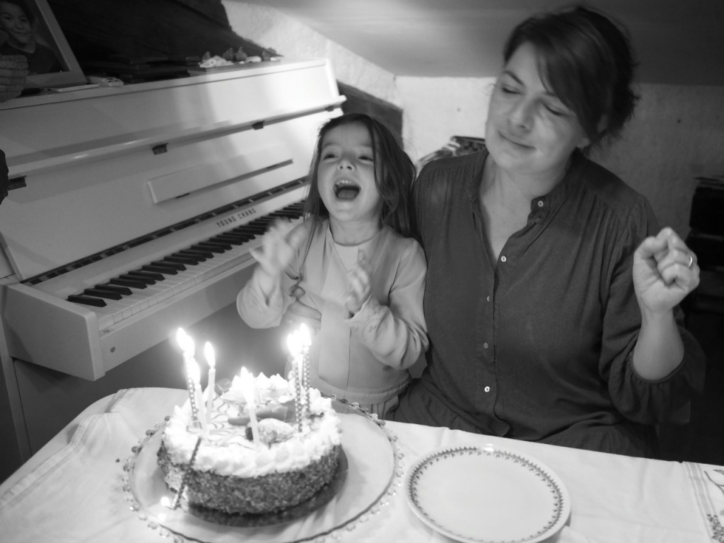 J’aime la moue de ma mère qui accompagne la mienne, comme si je mangeais mieux avec sa grimace, j’aime ce pull, tu l’as gardé maman? le bavoir pomme, si furieusement 70! Pardessus tout j’aime ce petit jonc qui serre mon poignet potelé, il est plus grand, mais c’est le même que je porte aujourd’hui.