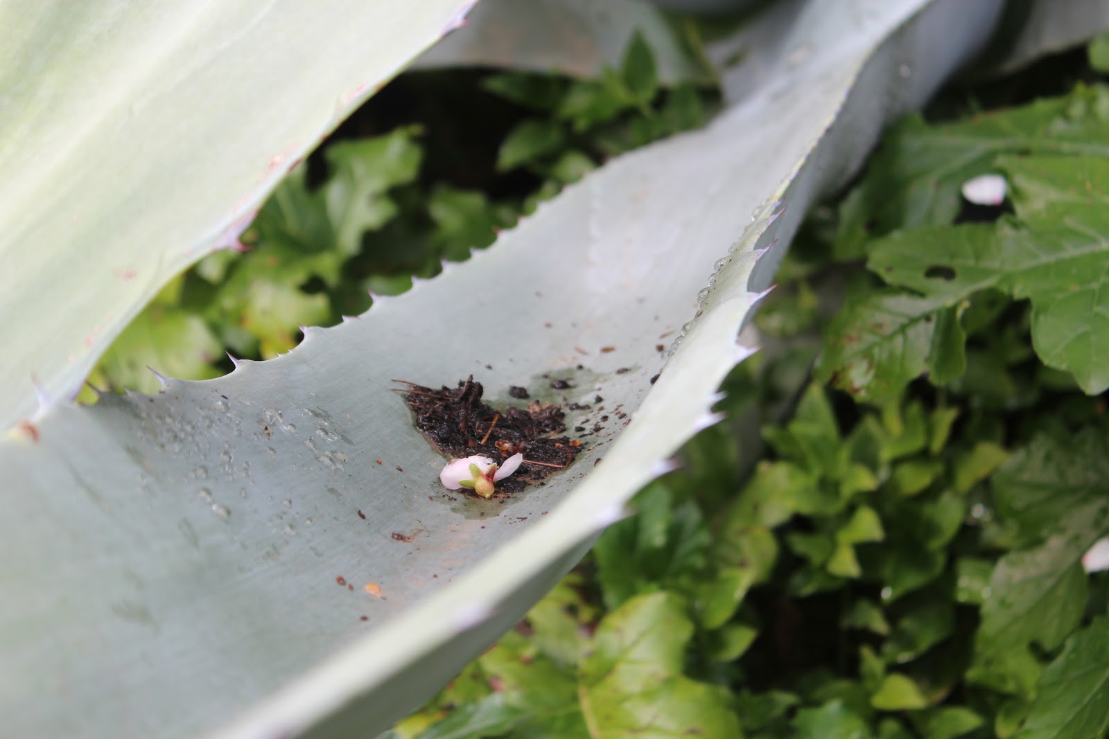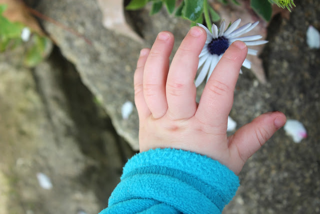 Je la laisse crapahuter partout, je l’aide peu, ne lui interdit pas grand chose. Je la laisse découvrir les merveilles et creuser dans la terre humide. Elle observe les dents ascérees des agaves sans se faire piquer, l’instinct fait surface. Elle caresse un fleur, cueille un trèfle et court le cacher…