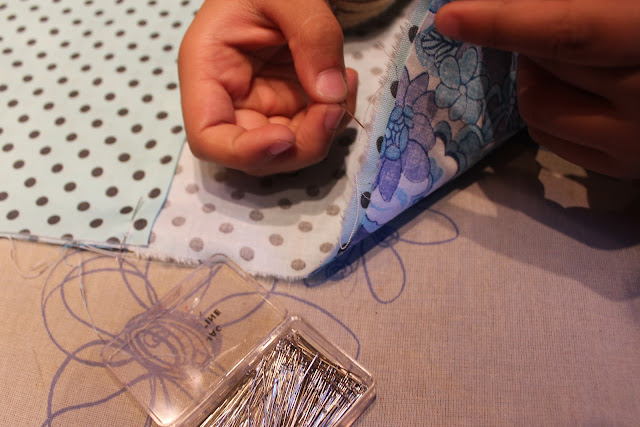 On a choisi de faire un coussin, le truc le plus simple pour apprendre à coudre droit.