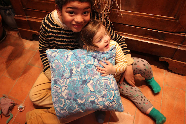La Violette avait hâte de voir le résultat! hop on retourne et voilà le premier coussin/oreiller du Cha!