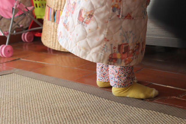 Ah c’est drôle, moi je détestais les robes de chambre quand j’étais petite (les notres ressemblaient plutot à un peignoir moche en espèce de lainage chaud qui boulochait), mais là j’avoue que le petit côté décalé lui va bien!
