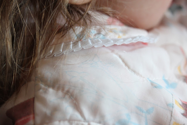ah c’est trop craquant ! hier après-midi , j’ai rendue visite à ma voisine , et je la vois blottie en robe de chambre matelassée , elle et surtout sa fille ! un petit bout de chou de 9 ans …..;trop mignonne ! elle était emmitouflée dans deux douillettes matelassées rose , garnies de très jolie dentelle …… je n’ai pu résister au plaisir de la prendre dans mes bras , elle était à croquer !