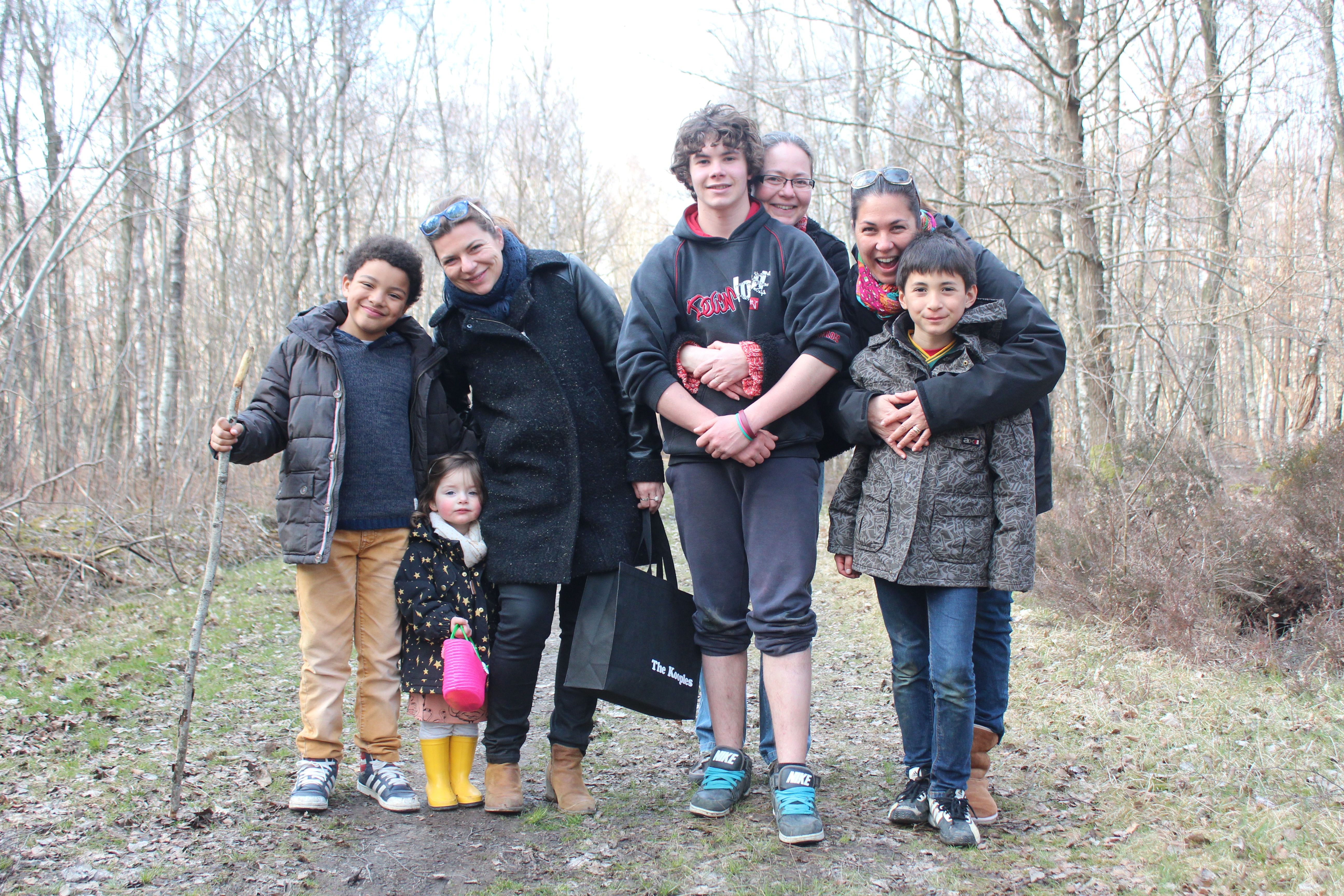 Comme tout le monde je pense, hier nous avons cherché les oeufs en chocolat, cette année Violette a été aidé par la brochette des cousins… Sacha, Tiago et Hugo, les trois inséparables… en parlant de brochette, voici celle des cousines, les filles va falloir faire un truc pour nos cheveux blancs, il est loin le temps de nos 15 ans!