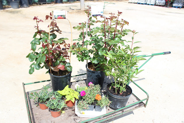 Aujourd’hui ma maman nous a accompagné chez son pépiniériste pour nous offrir quelques plantes. Nous avons choisi des rosiers, des pivoines et des pourpiers.