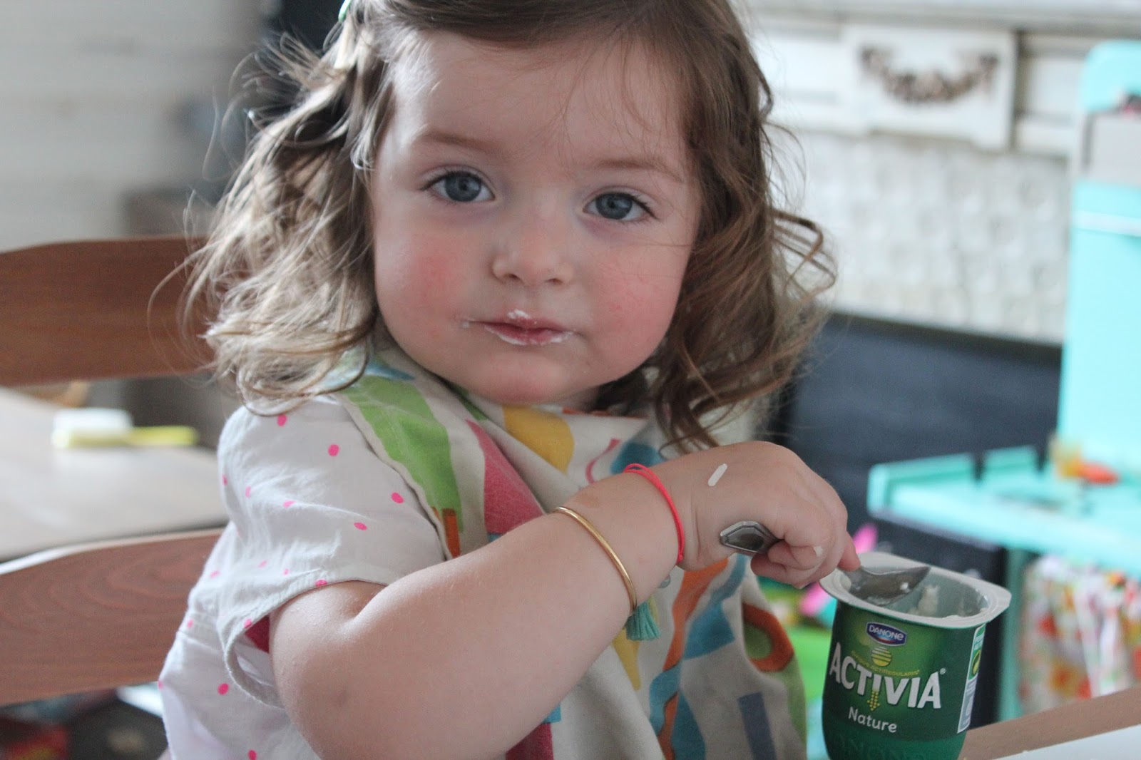 Oh p’tite mère ♥ Elle est magnifique cette photo, son expression, ses petites traces de yaourt autour de la bouche !