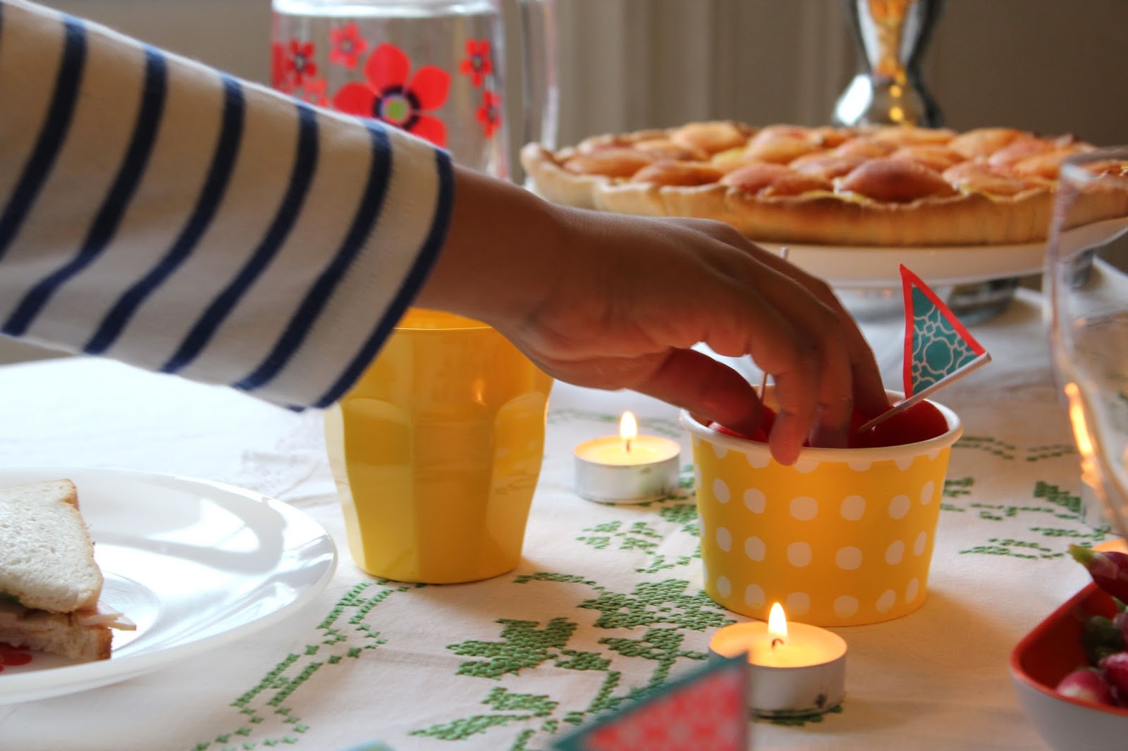 Quelle bonne idée de faire une jolie table pour manger des bons sandwichs et des chips ! C’est vrai, les jolies nappes, les bougeoirs et la jolie vaisselle ne devraient pas se cantonner uniquement aux « grandes occasions » !
