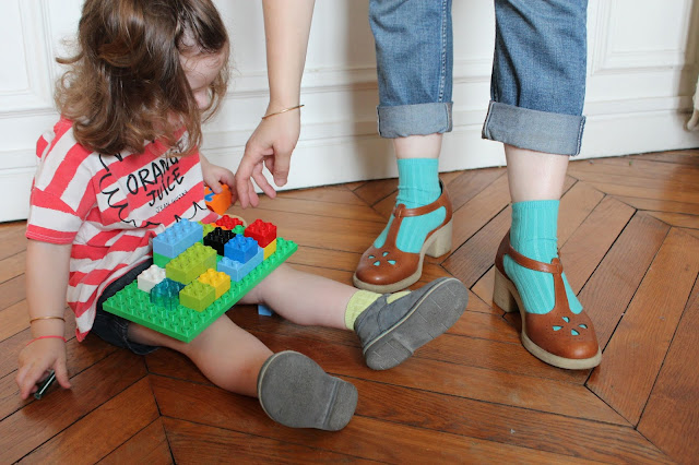 oh oh j’adore ta combinaison chaussettes/chaussures et le jeu! vieux rose en grand lagon en mini!