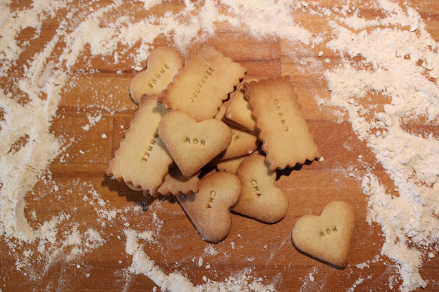 Alors voilà, je suis comme une gamine dans ma cuisine, de la farine sur le nez et dans les cheveux, et je prépare des mots d’amours pour le petit déjeuner du Cha !