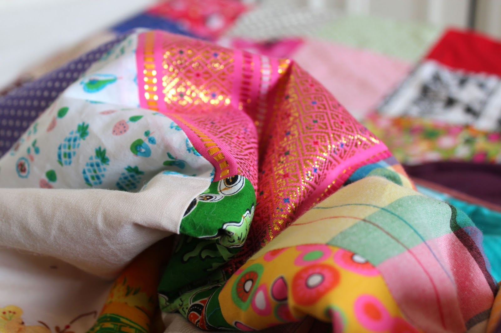 J’ai des coussins indiens en patchwork de vieux saris … J’aime l’idée qu’ils ont chacun une belle histoire de vie à raconter 😉