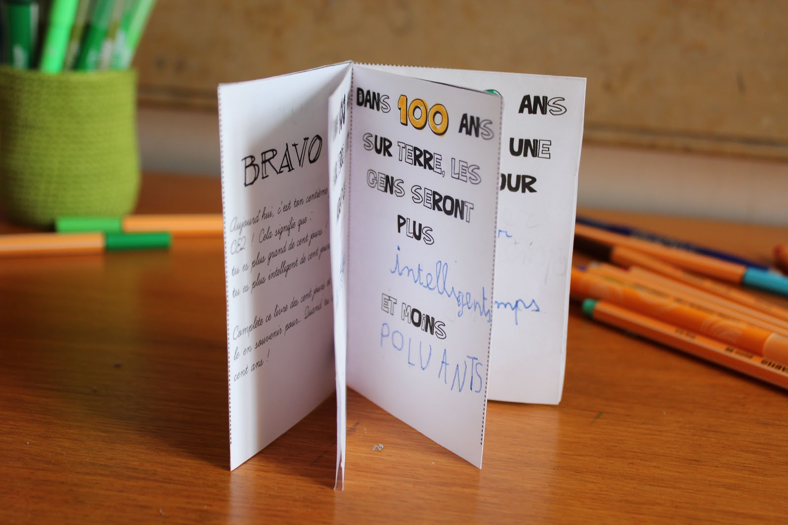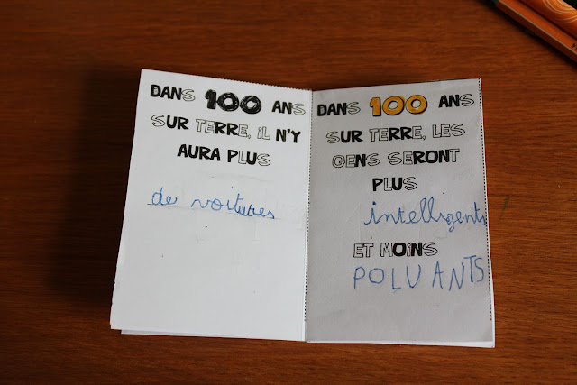 Marion c’est un peu la maîtresse dont on rêve pour ses enfants! Elle est douce et jolie et elle a de bonnes idées! J’avais repéré sur instagram son projet du « Livre des cent jours » il y a quelques temps et je voulais le faire faire à Sacha. Un moyen de s’interroger sur le temps qui passe, sur l’avenir de notre planète. Sur le futur très lointain. À bientôt neuf ans, pas facile de se projeter dans une société où surement nous n’existeront plus.