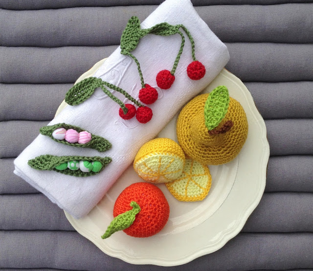 Cette dinette au crochet est magnifique! J’ai moi-même commencé à faire quelques fruits et légumes au crochet grâce à des tutos trouvés sur le net mais ce n’est pas aussi joli que ce que je vois sur les photos! Ces merveilles crochetés donnent envie de retourner jouer à la marchande!