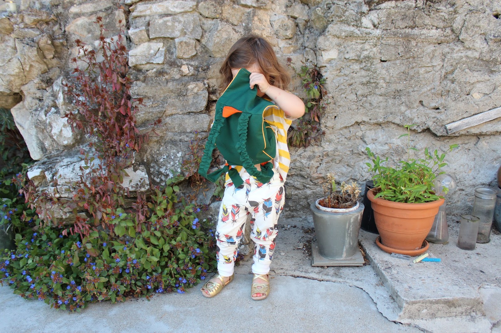 Et pour l’occase on avait choisi une petite tenue, en mixant du vieux et du neuf, de nouveaux motifs, le doré dont elle raffole. C’est comme ça que je l’aime la Violette, en imprimés mélangés, en couleurs et en douceur.
