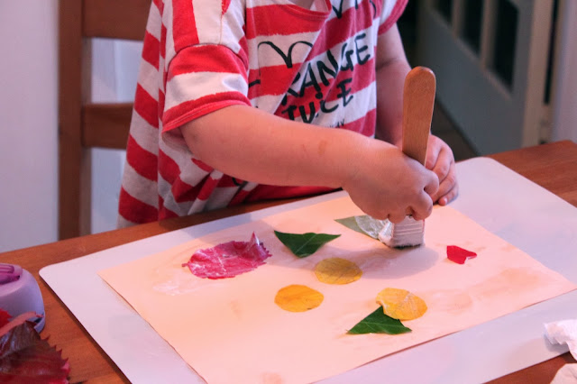 Ensuite il suffit de découper des motifs aux ciseaux ou à la perforatrice rigolote et de laisser les petits s’en mettre partout:-)
