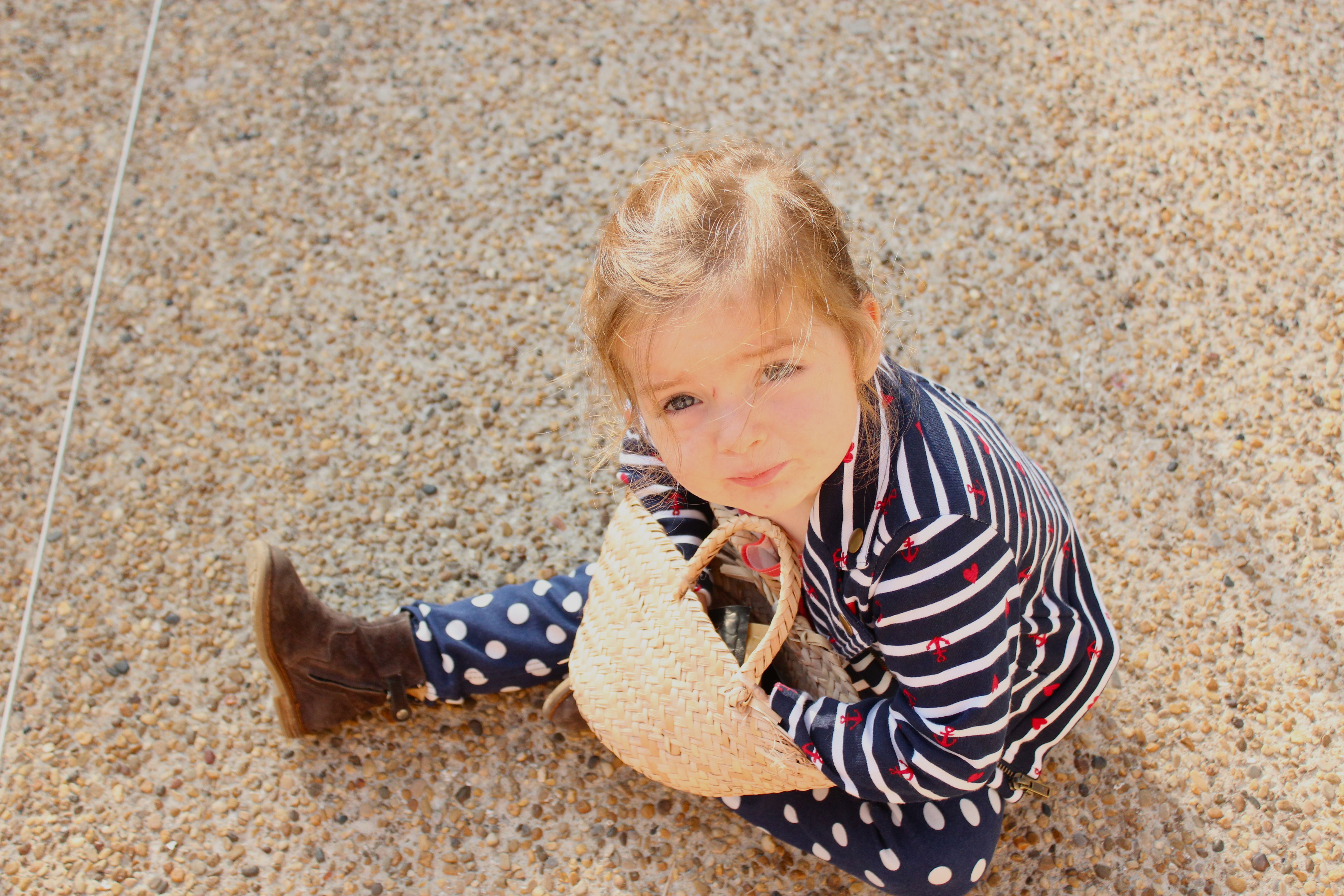 J’ai choisi pour cette tenue « j’irais bien me faire une petite glace au bord de la mer », des pois, des rayures, des coeurs, des gros motifs, allons y, soyons fous, on a pas deux ans et demi tous les jours! Et pour que ça fonctionne, on garde une unité de couleur et on joue avec les imprimés.
