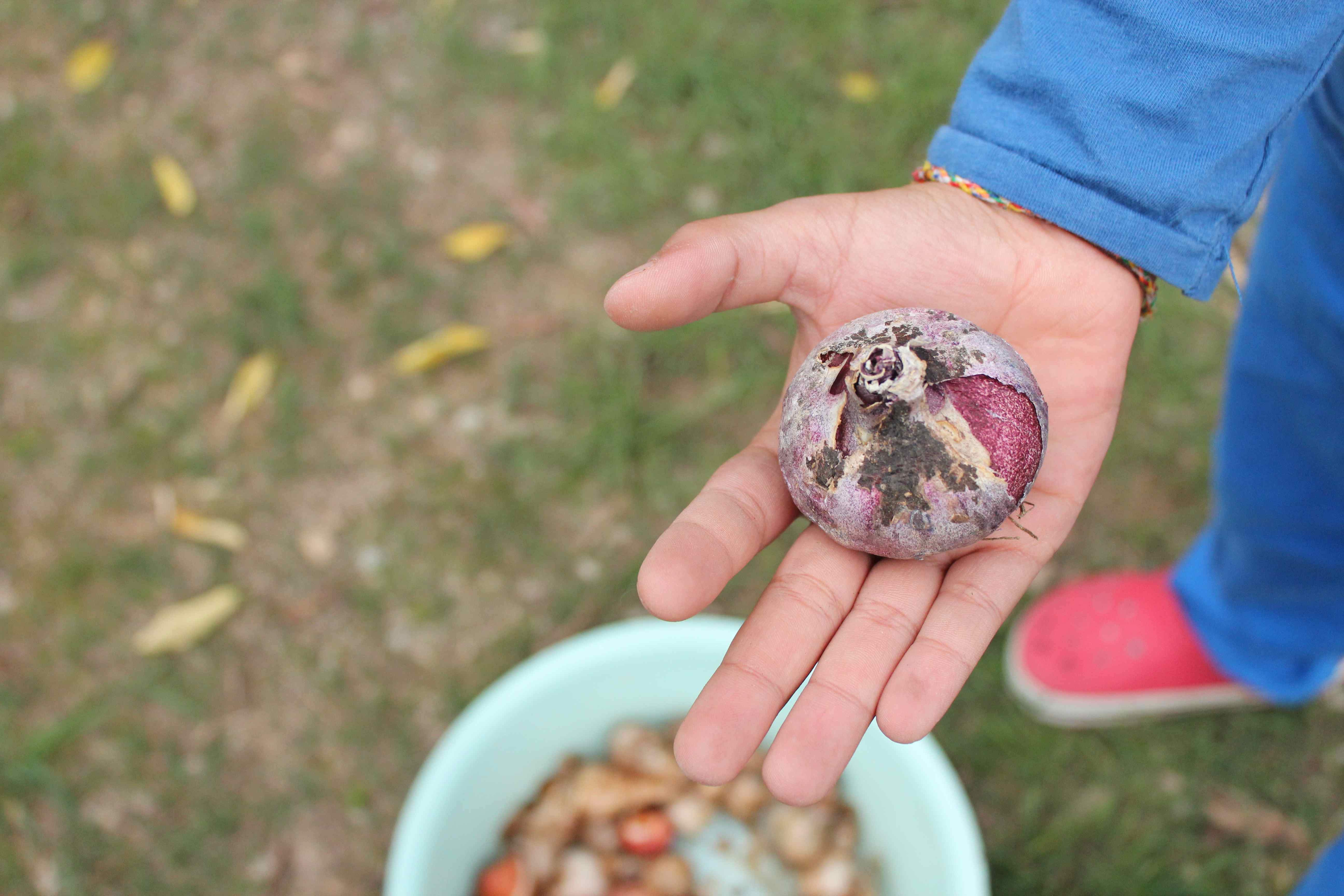 C’est le moment de planter les bulbes, on est même un peu en retard. On en avait tout un stock, des tulipes, des narcisses des anémones… Je crois bien qu’à part celui que l’on mettait dans un vase pour avoir une jacinthe à Noël, les enfants n’avaient jamais vu autant d’oignons de leur vie.