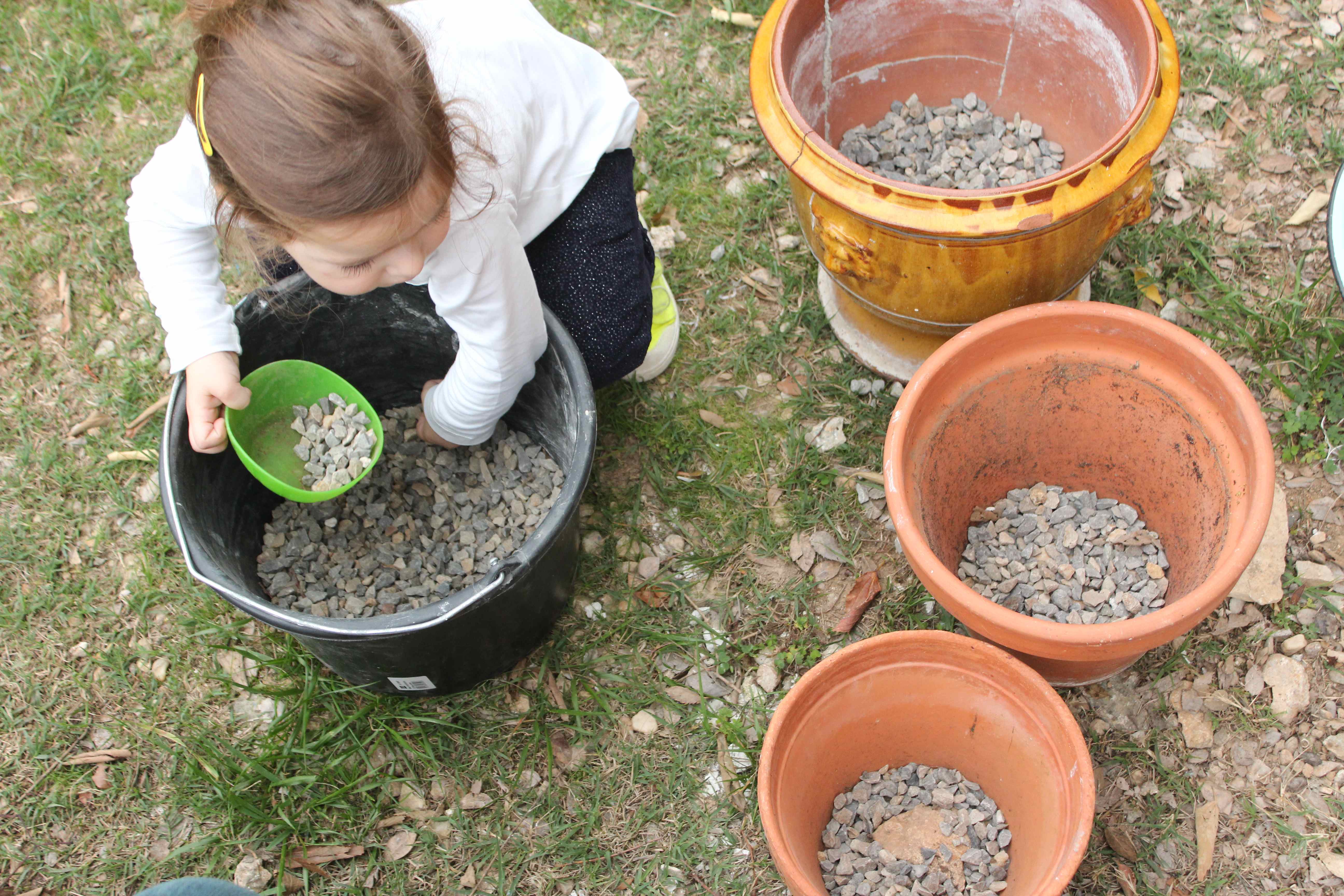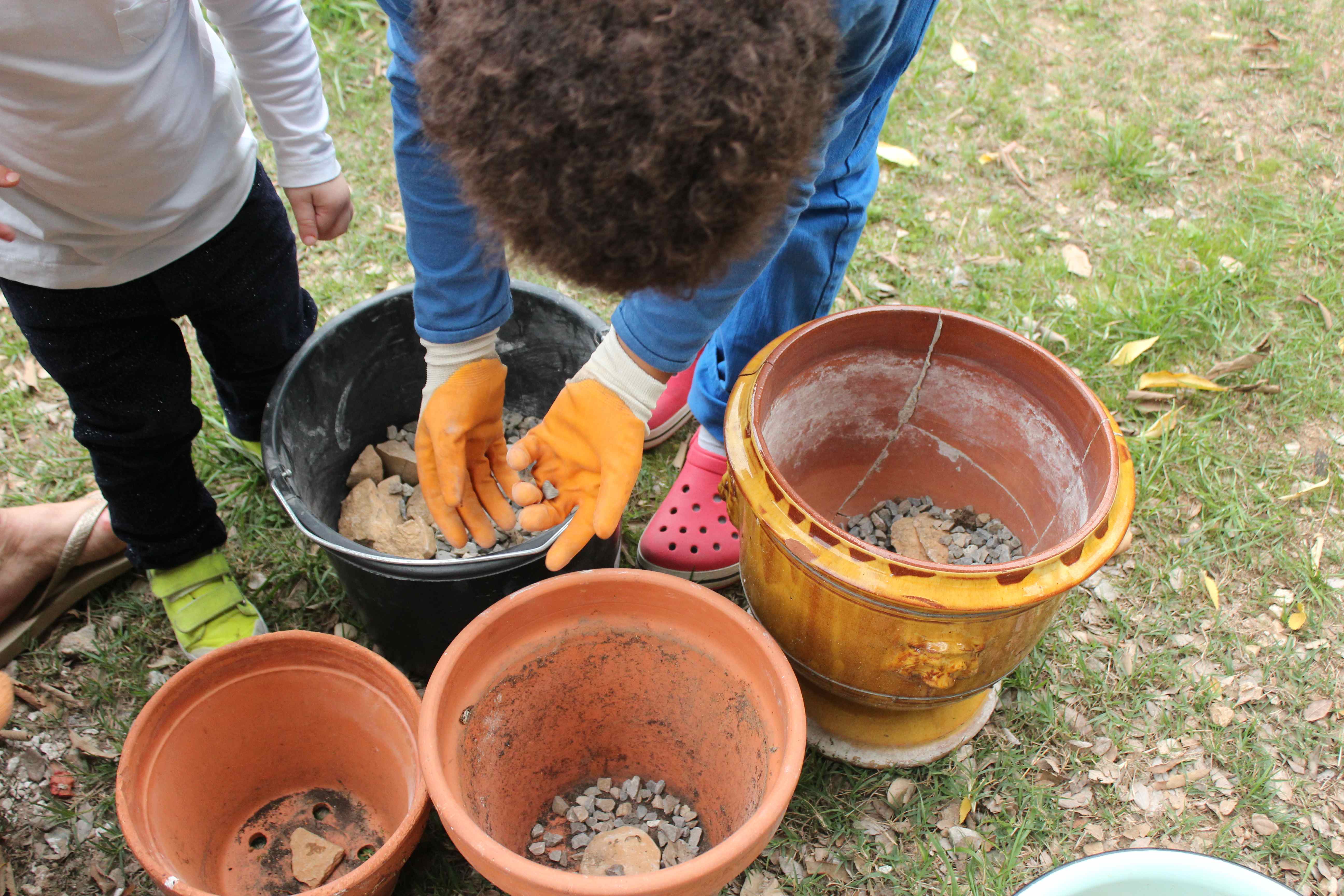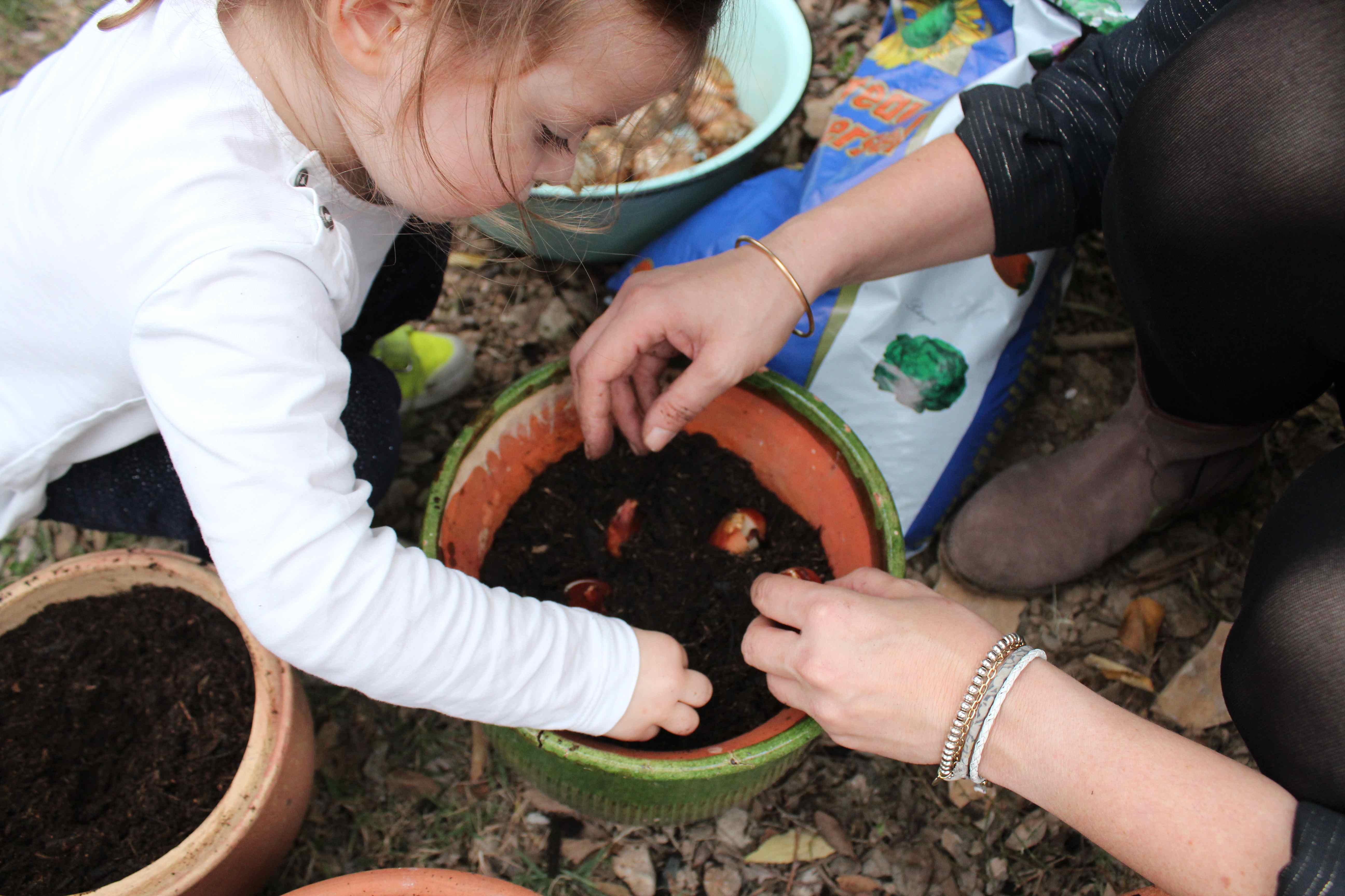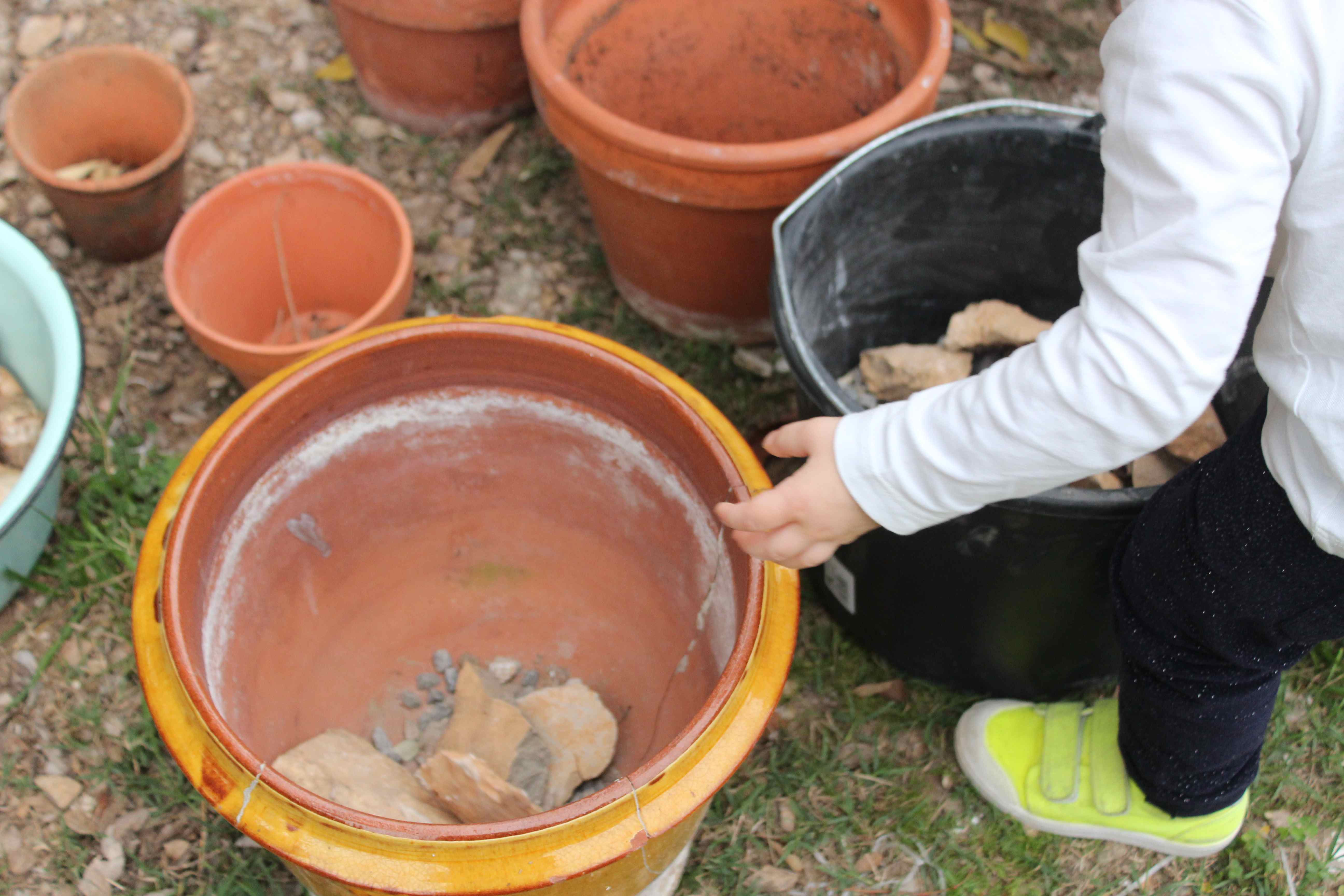 On a choisi les plus vieux pots du jardin, ceux un peu abandonnés et tout craquelés. Ils auront une deuxième vie quand le printemps arrivera, lorsque toutes les couleurs exploseront.