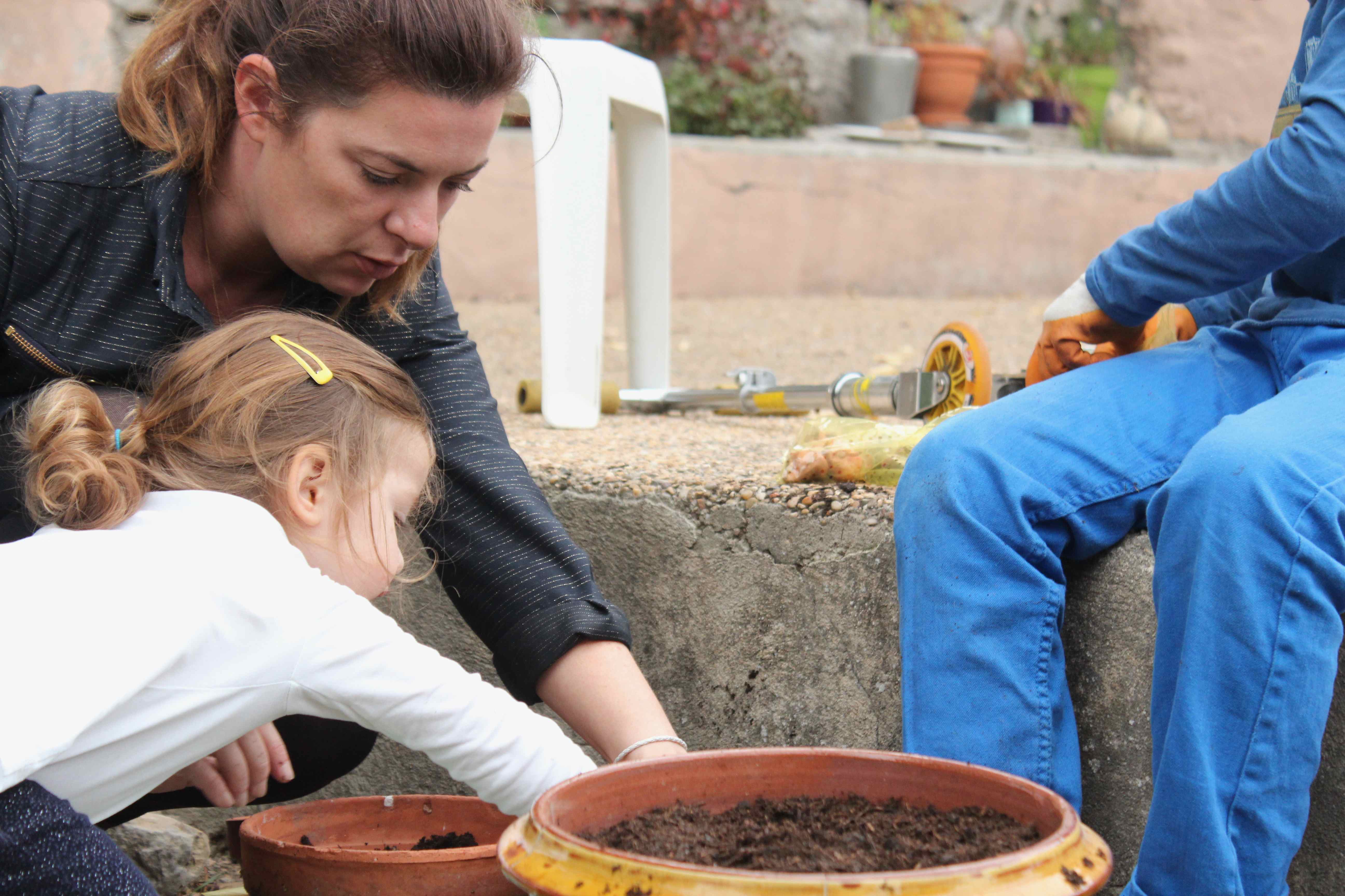 La parole se libère autour des plantations, et pourquoi ci? et pourquoi ça?, je mets pas trop de terre là maman? Des échanges simples, la vie toute bête. Mais si importante.