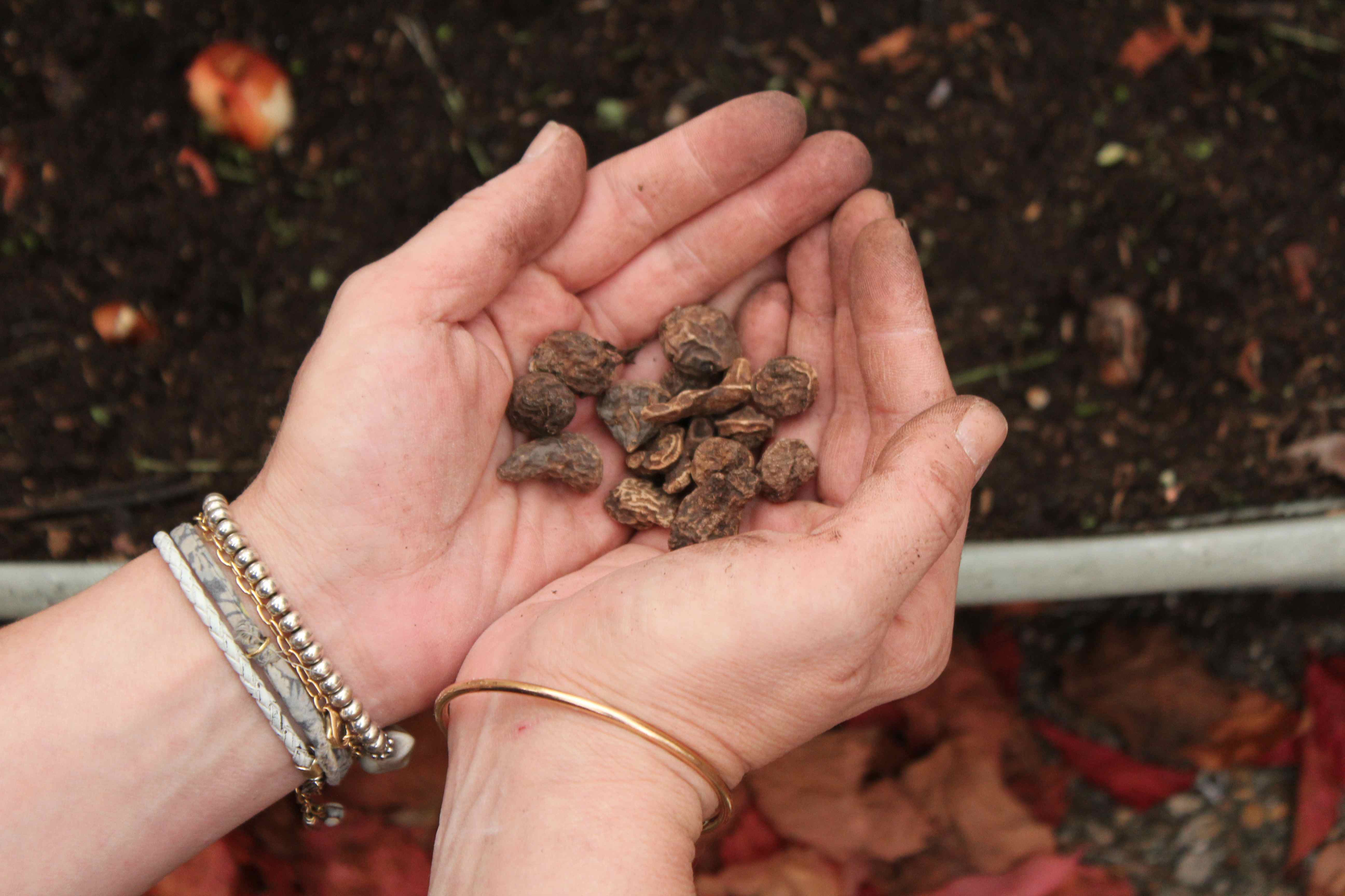 On a fait comme dans les livres, des cailloux au fond, une couche de gravier pour drainer et de la belle terre noire bien grasse pour nourrir cet hiver.