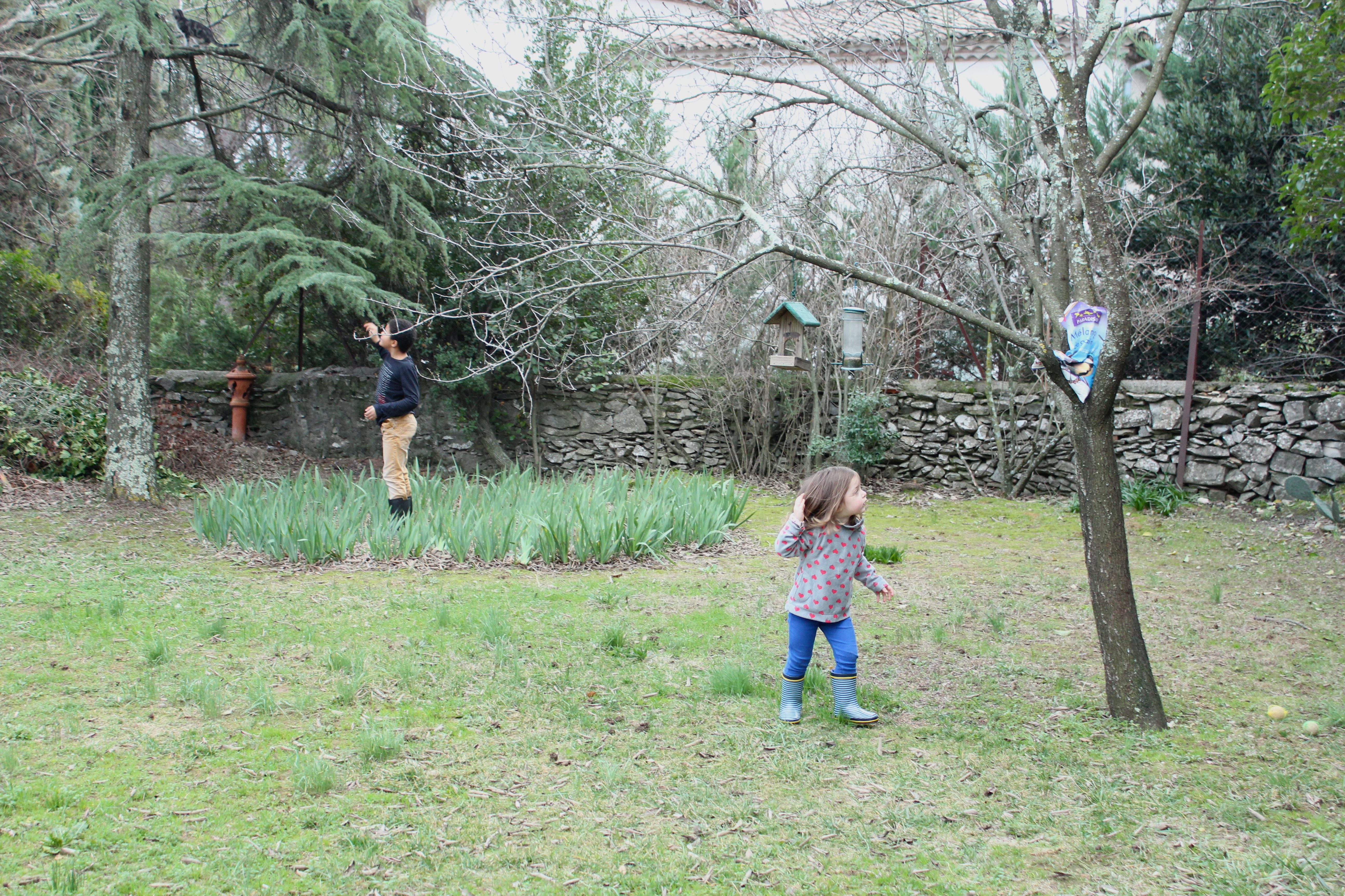Elle a aussi voulu mettre son chapeau d’été devenu trop petit et ses lunettes d’il y a deux ans. Violette n’a que faire des saisons et des tailles, elle ne voit que les souvenirs qui sont attachés à tels ou tels vêtements, elle ne voit que la couleur ou la coolitude extrême d’un accessoire. Son chapeau de paille est le truc qu’elle préfère au monde (avec le tshirt barbapapa de son frère qui est en dessous et que l’on ne voit pas.)