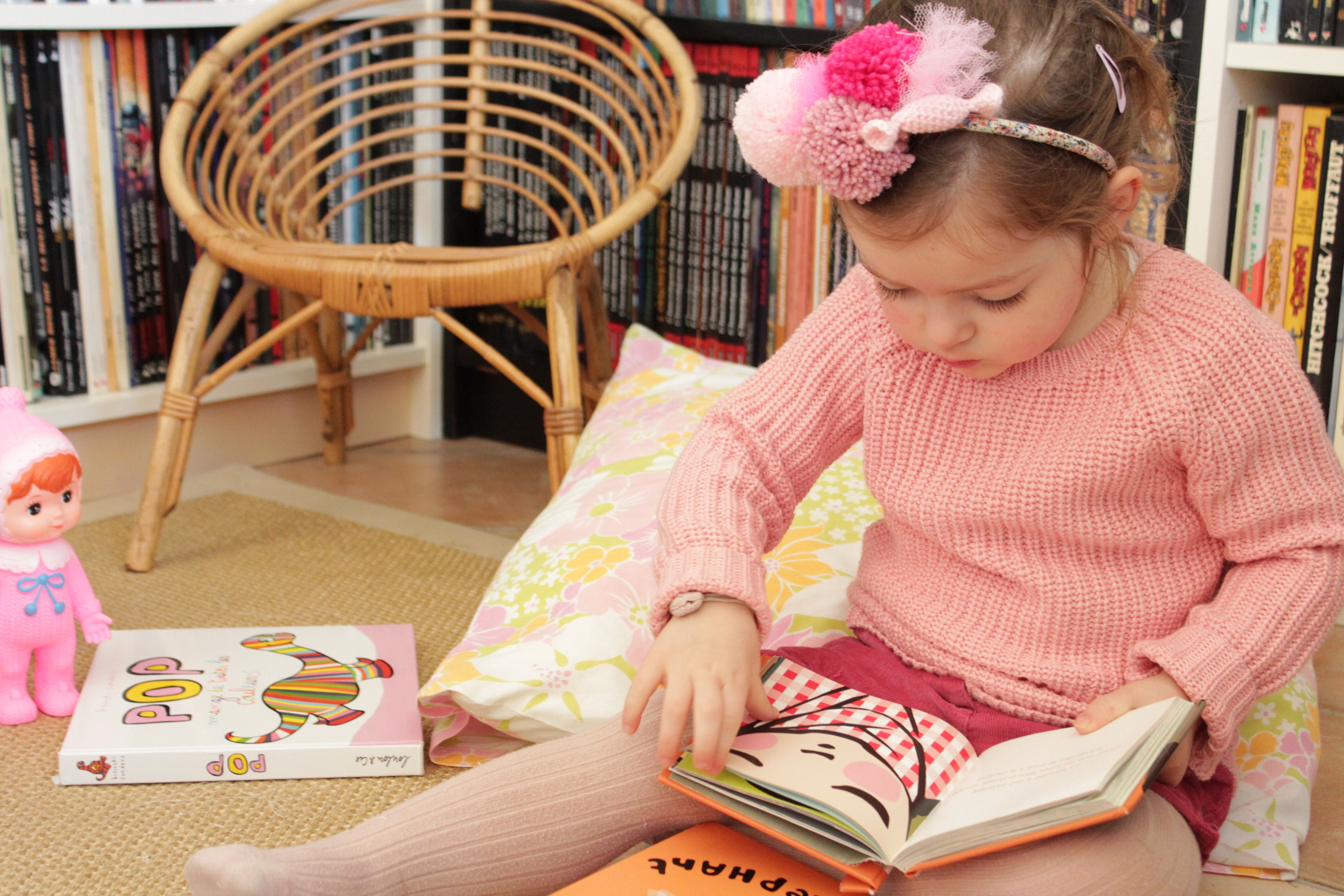 ahhhhh !!!! je l’attendais ce look ! et ce serre tête il est trop beau ! c’est dur hein de leur faire porter un truc sur la tête ! ça lui va trés bien le rose ! des bisous !