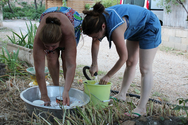 ***Violette porte un marcel Kiabi, une Jupe homemade, des sandales Saltwaters, Je porte l’indétronable jeans H&M, une blouse homemade et des clogs Lotta from Stockholm
