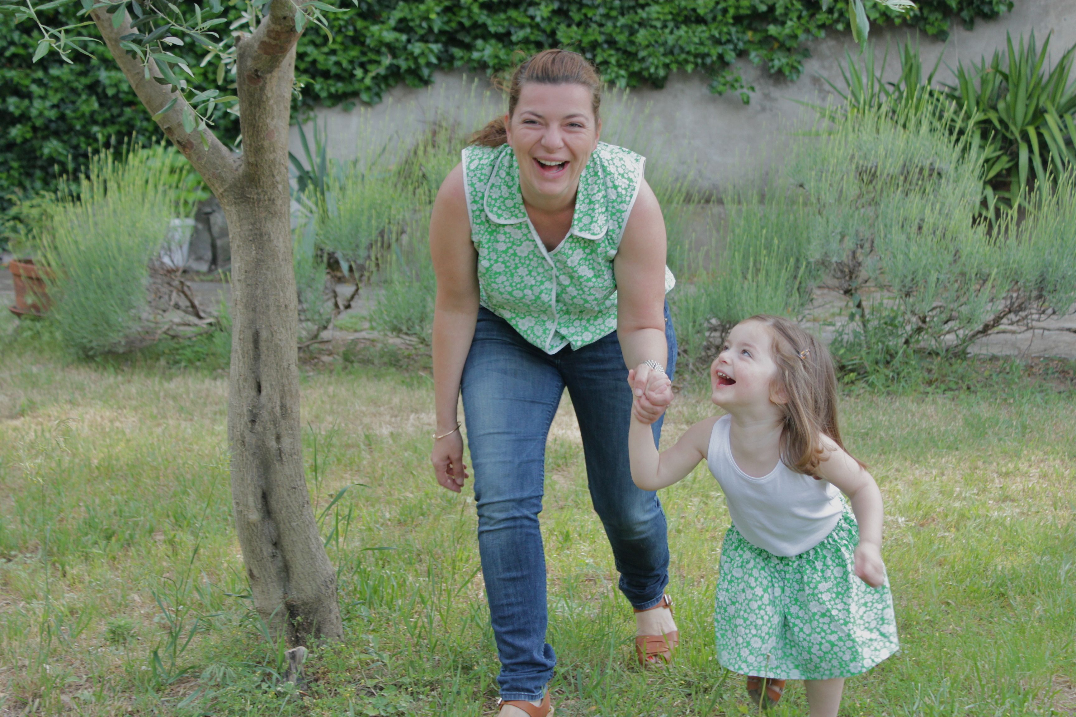 Violette adore sa jupette, mais elle aime encore plus avoir les même fleurs que moi. J’ai décelé dans son regard, un sourire timide empreint de fierté et d’excitation.