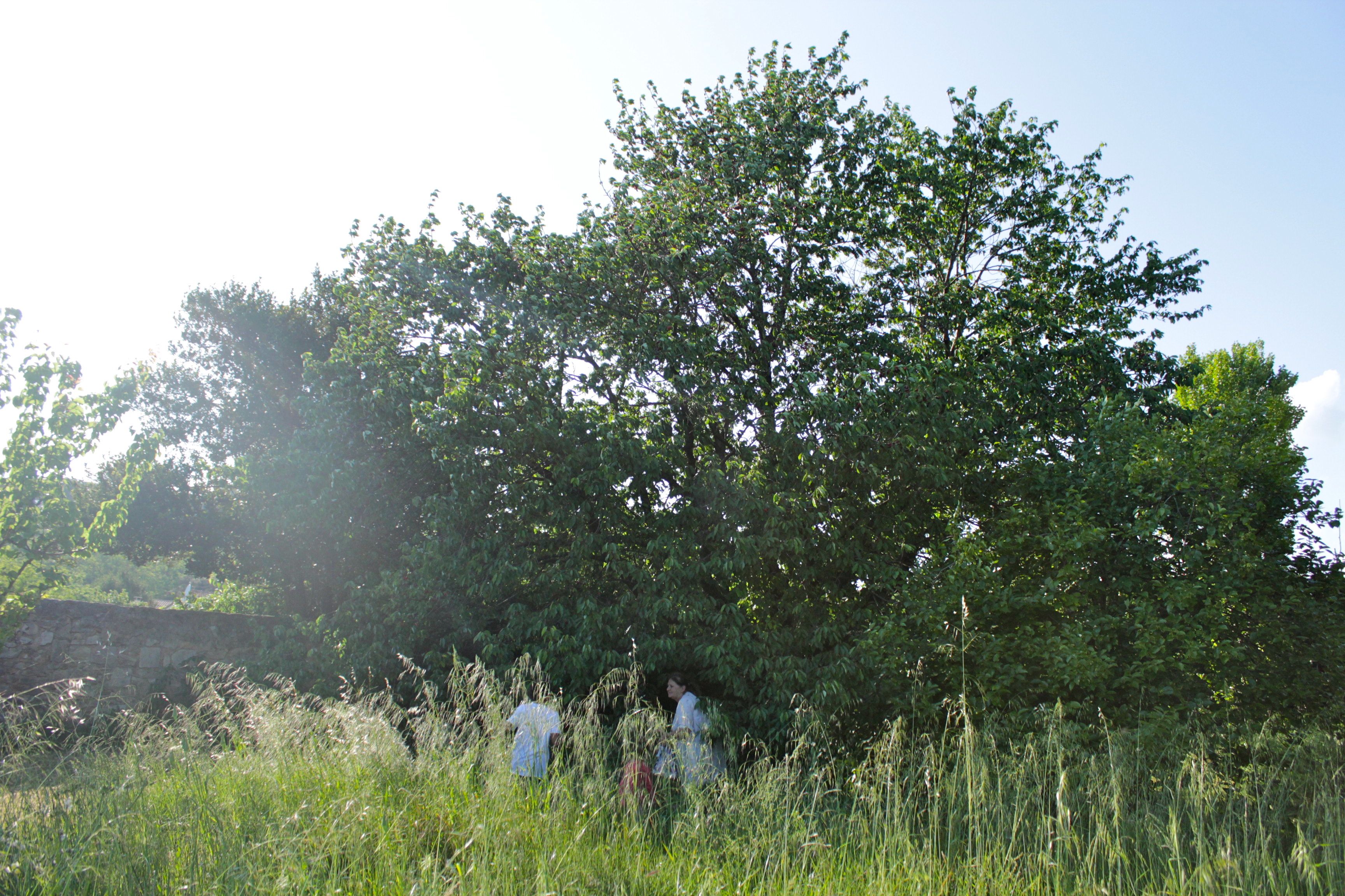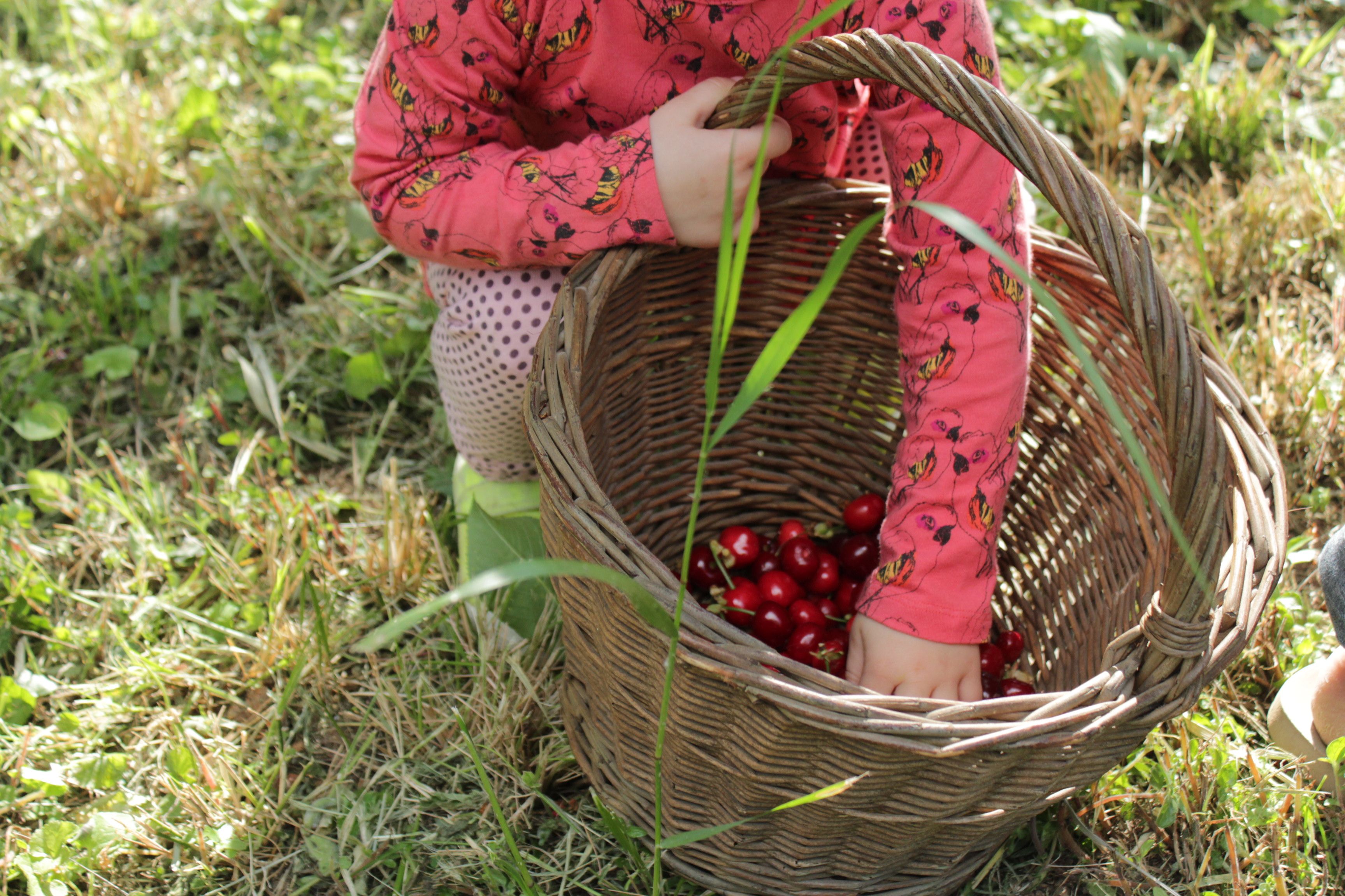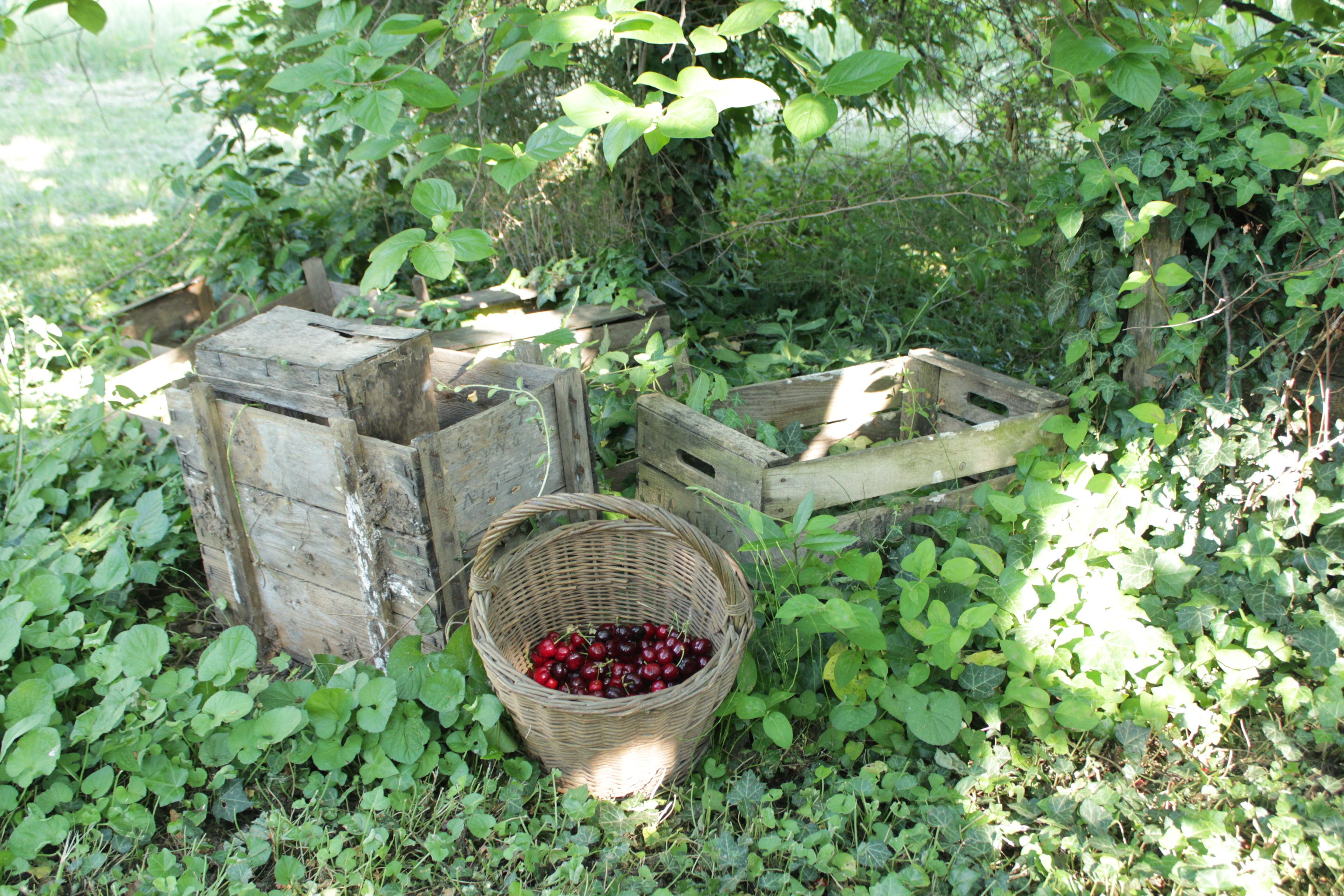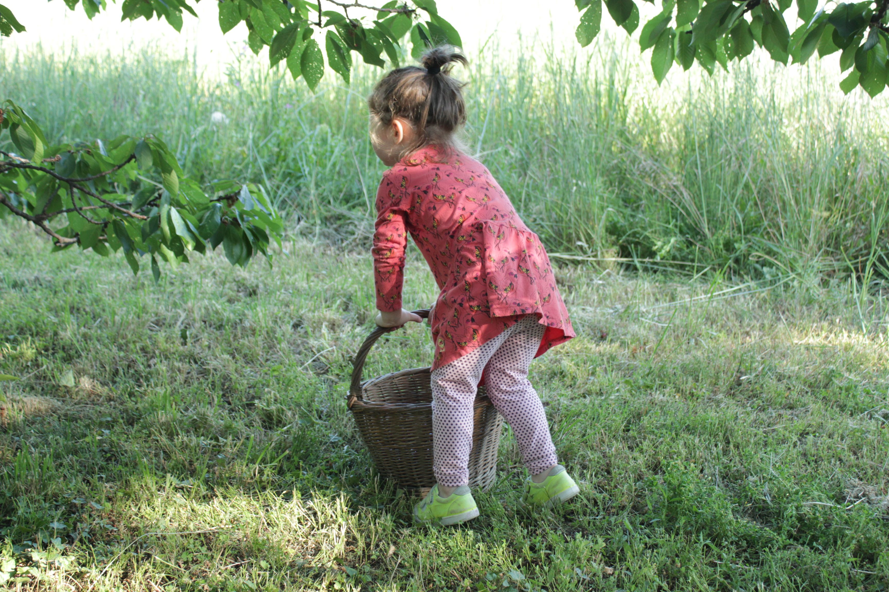Arrivés dans mon village d’enfance, le cerisier majestueux nous attendait, l’herbe était haute, Sacha a même paumé une tongue,.Violette s’est appliquée à bien remplir le panier, tandis que le Cha et moi nous goinfrions de cerises noires directement sur les branches. Quatre mangées pour cinq cueillies.
