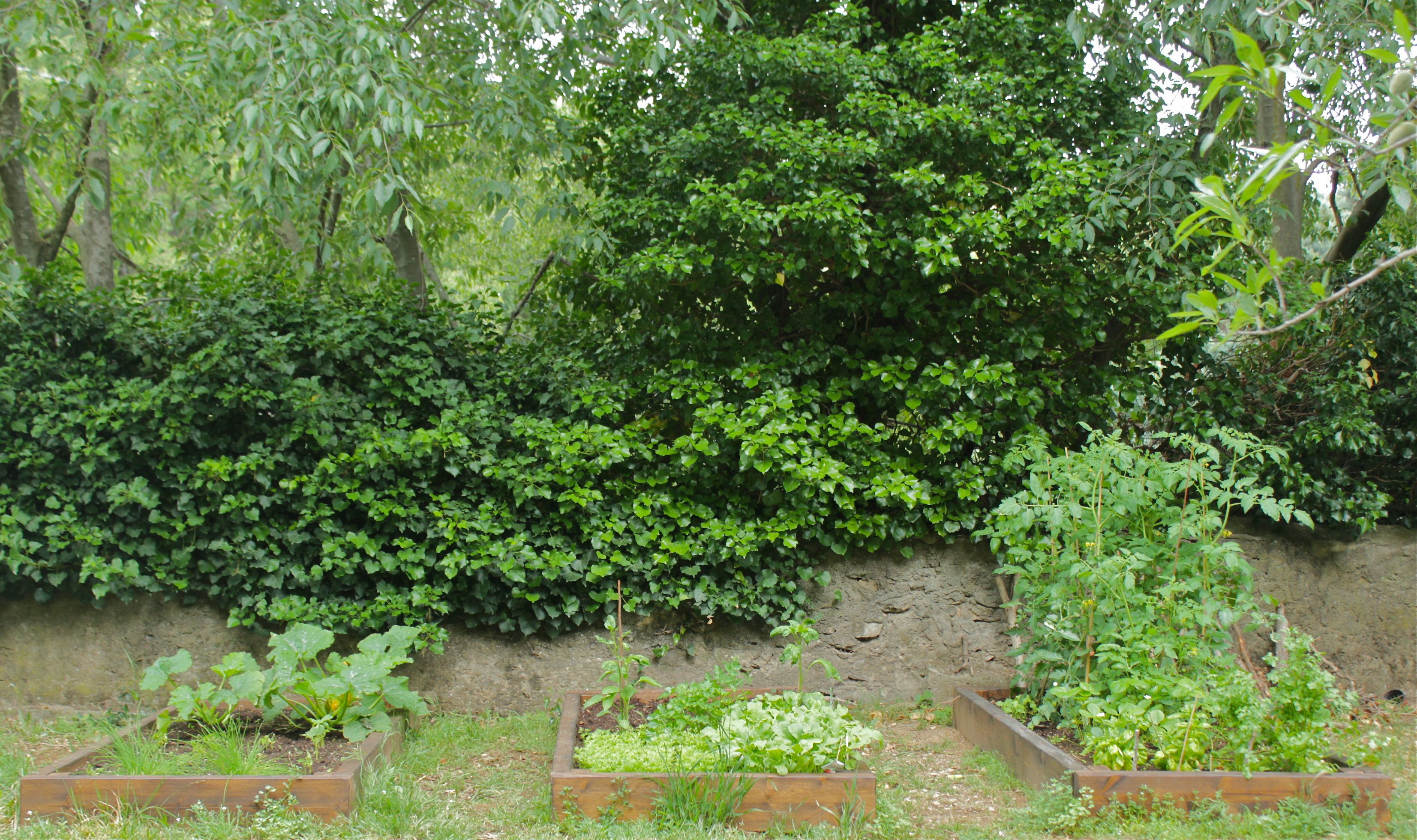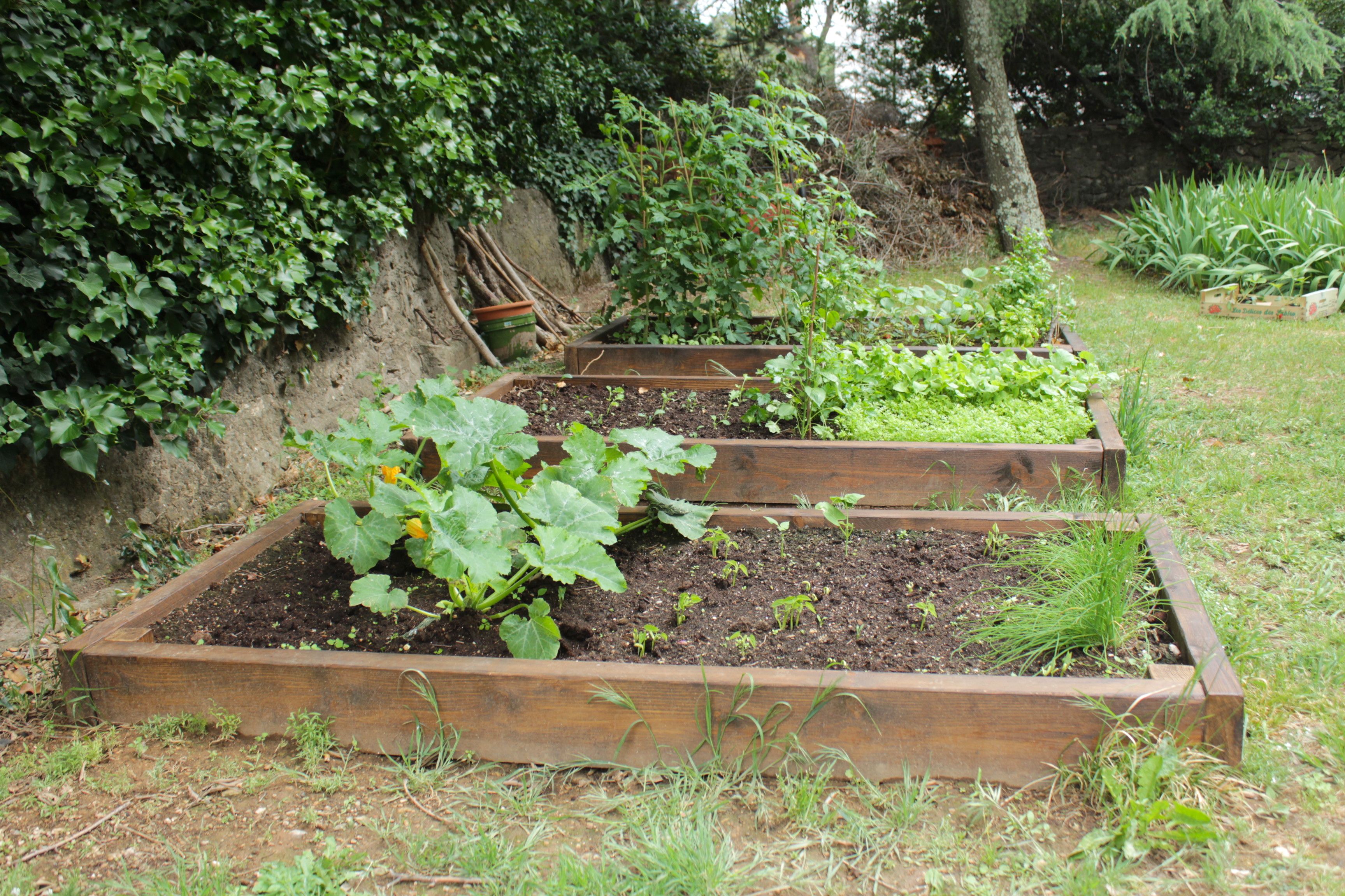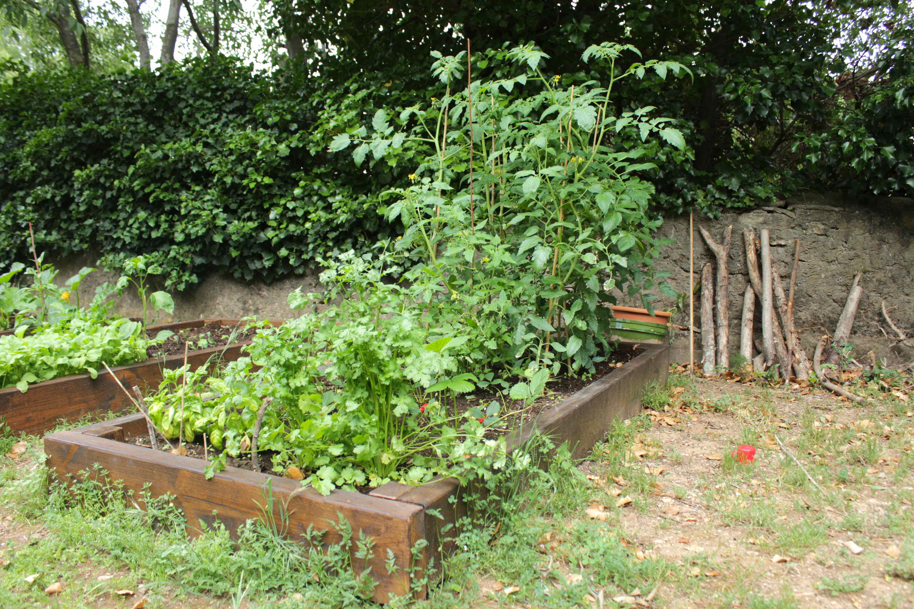Nous avons fait un truc sans prétention, avec nos mains, nos scies, nos pinceaux et notre trinquet! Rod nous a fabriqué trois grands bacs avec des bastaings que nous avons traités pour l’extérieur. Sacha et moi avons récupéré de la terre un peu partout dans le jardin, nous l’avons tamisée pour qu’elle soit la plus belle possible. Ensuite ça s’est corsé! Quoi planter, où? Dans quel ordre et en quelle quantité?