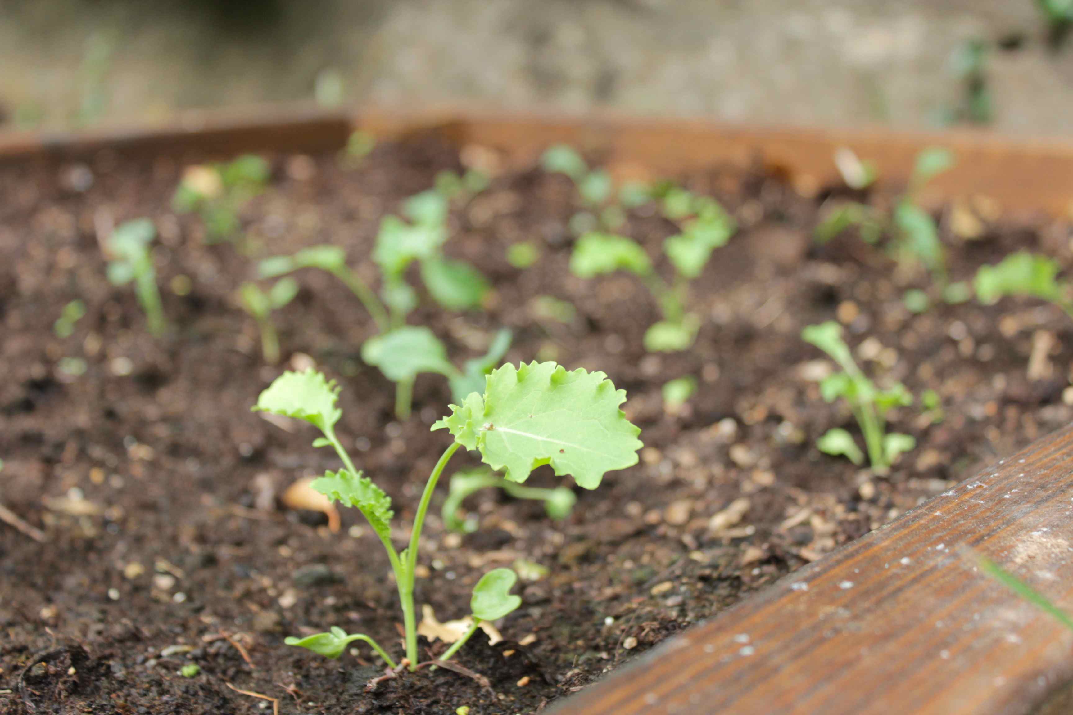 Et puis il y a mes bébés, ceux que je couve comme une louve, ceux que j’ai patiemment attendus. Les deux variétés de Kale, ce chou frisé américain que je cherchais partout sans jamais en trouver. J’ai décidé de le faire pousser! J’ai d’abord semé quelques graines en pot et attendu que les premières pousses arrivent. Elles viennent tout juste d’être plantées là et elles sont droites comme des I ! J’avais un peu peur de cette étape, un peu peur de faire tout foirer, mais apparemment elles ont bien pris.