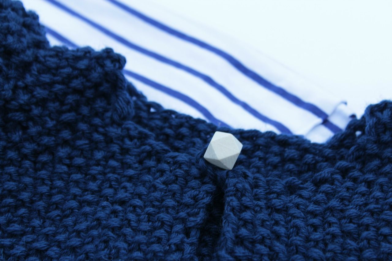 Après un été dédié à la couture, je me remets doucement à la laine et aux aiguilles. Je suis tombée raide dingue de ce modèle en point de riz. Idéal pour réchauffer l’automne qui arrive. Facile à enfiler pour l’école. Les petites manches papillons contrastent avec le côté brut des mailles. J’adore!