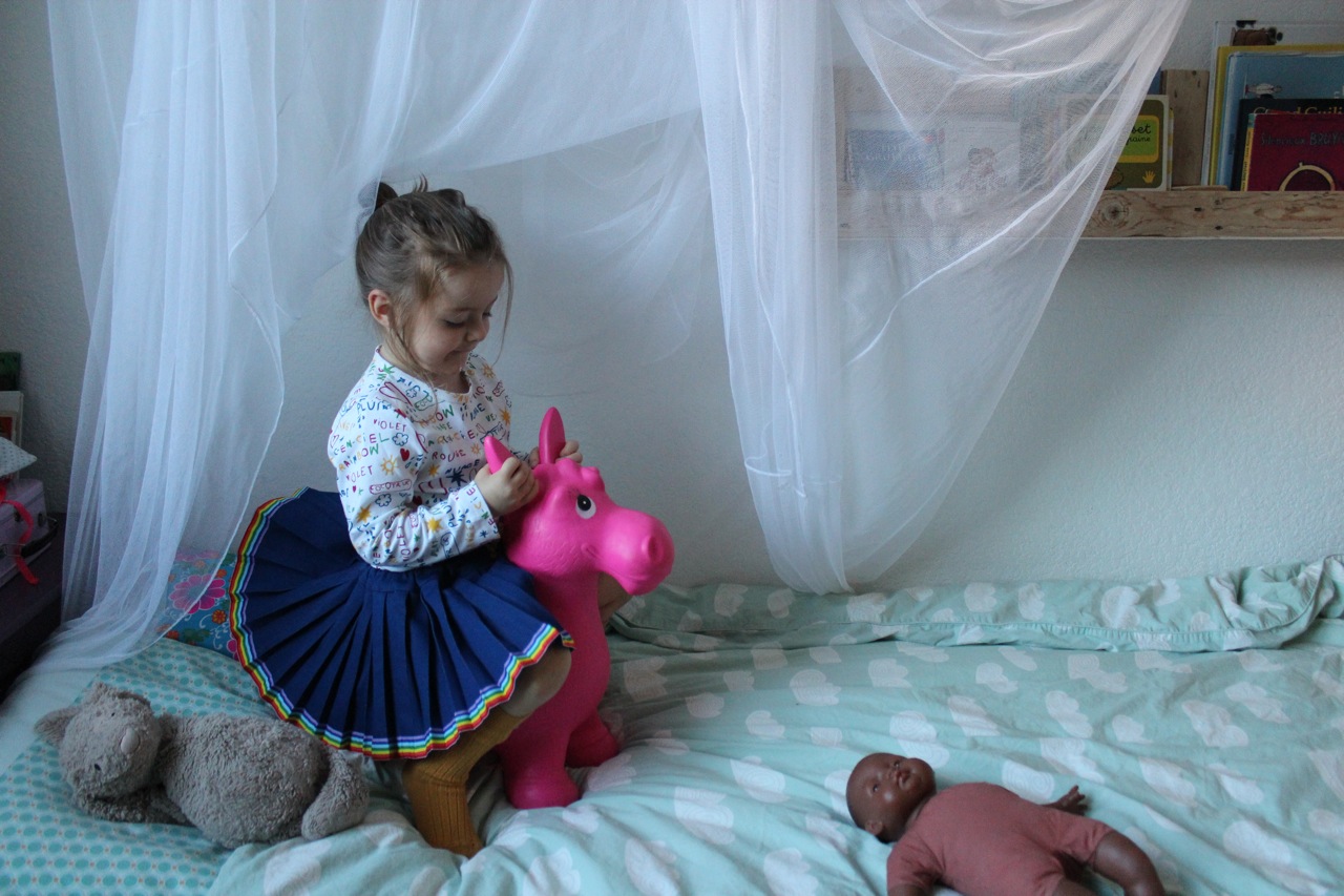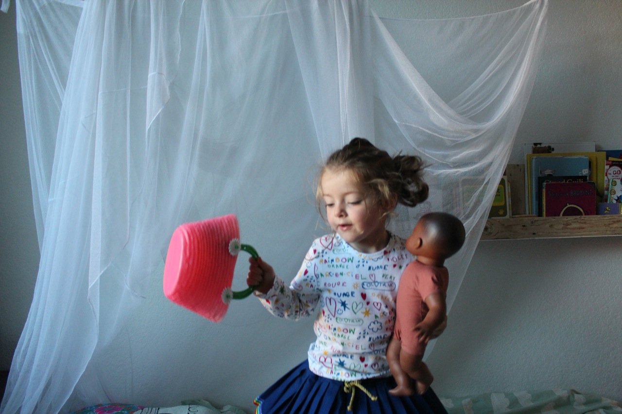 Nous y sommes! Les jeux pour faire semblant, les jeux pour faire comme. Et derrière tout ça des jeux pour grandir, pour s’affirmer, pour tester. J’avais oublié à quel point m’asseoir quelques minutes dans un coin d’une chambre d’enfants, sans bruit, en nous faisant les plus petits possible, pouvait nous apprendre sur eux.