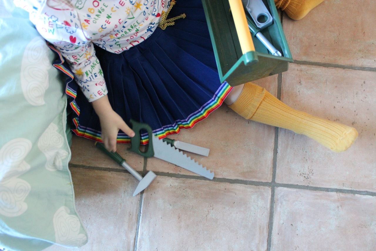 ***La princesse au marteau porte une jupe plissée soleil, un teeshirt Cocotruc, et des chaussettes hautes Collégien (5 euros de réduc avec le code LOVERITA). Et j’en profite pour vous montrer une petite bricole que j’ai trafiquée pour les enfants: une envolée de mots doux, le pas à pas est à retrouver ici.***
