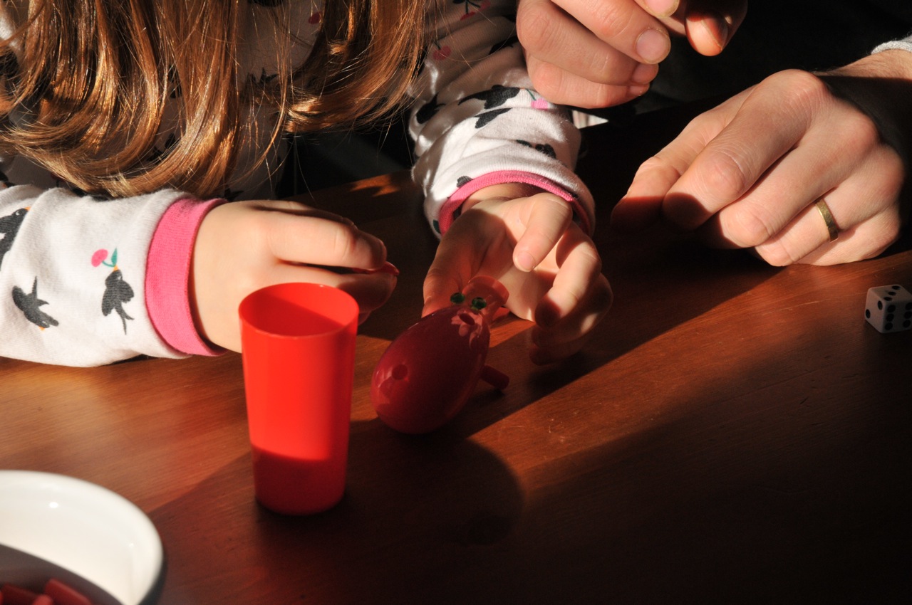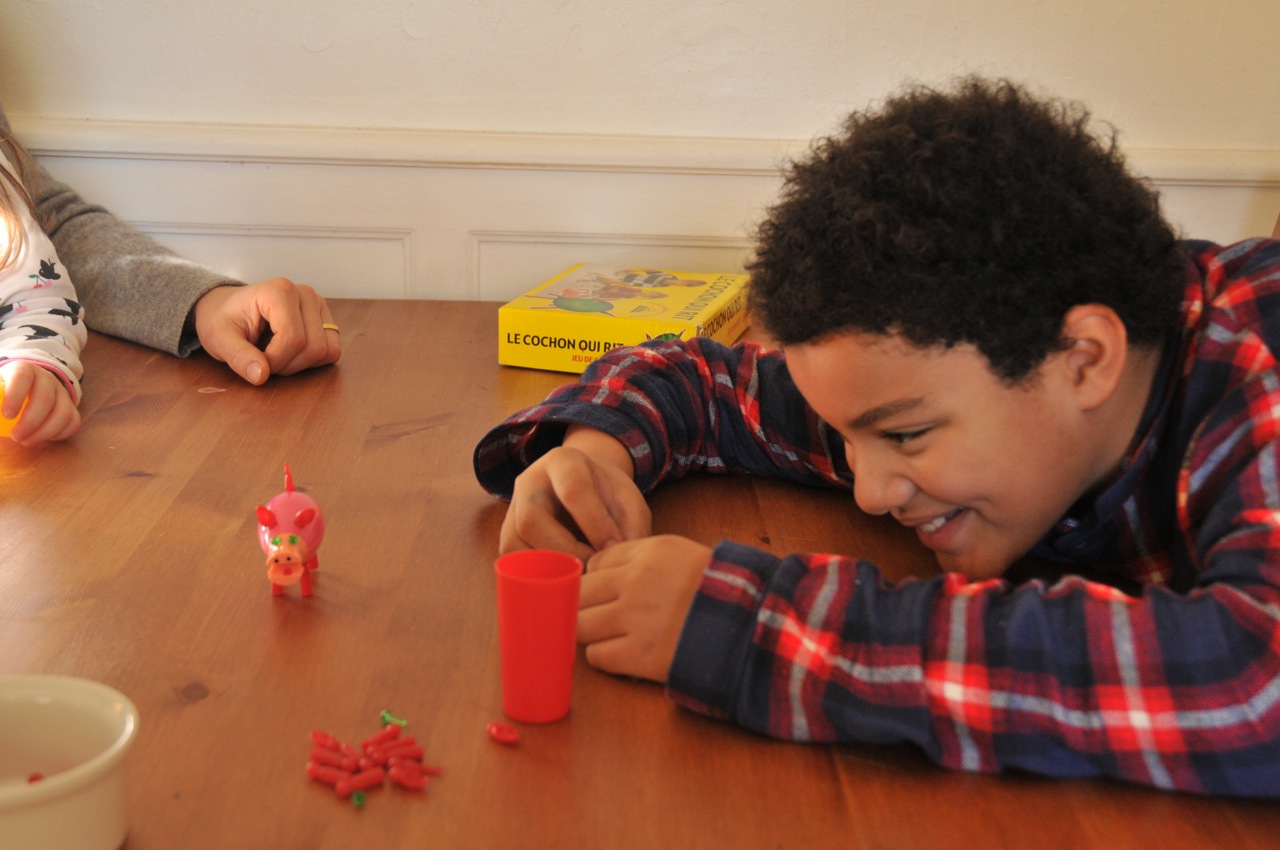 Hihi ! Pas trop de rapport mais c’est amusant nous avons jouer pour la première fois au cochon qui rit ce we 🙂