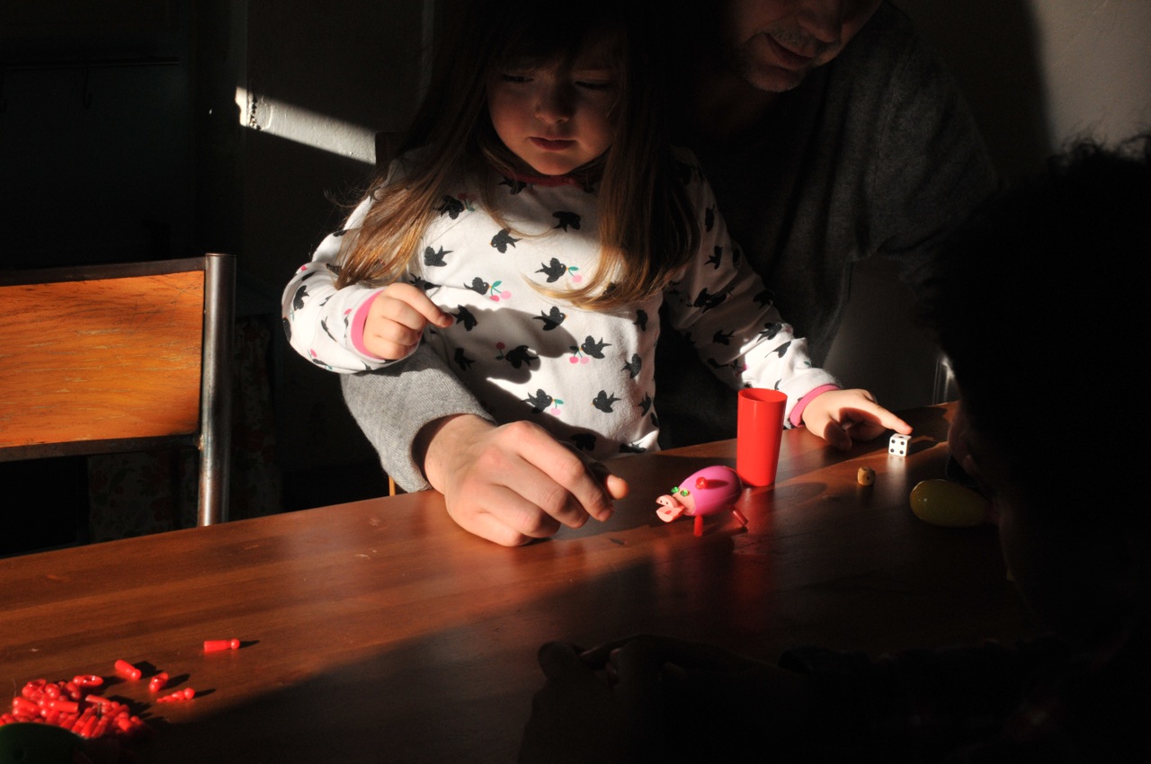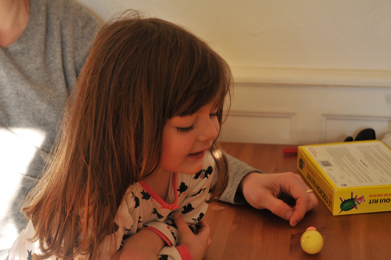 On a commencé quand ma n°1 avait 3 ans et était encore seule, au moment où mon amoureux s’est trouvé au chômage, pour expliquer les changements à venir. On n’en fait pas très souvent (je dirai… 2 à 3 fois par an ?). Mes filles aussi ont réclamé plus de choses ensemble. Alors des fois, le soir, on joue au lieu de lire, ça change un peu !…