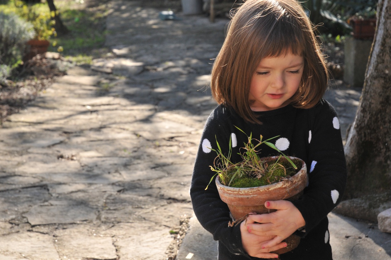 Je l’ai laissée faire, je ne voulais rien forcer, mais cette petite fille là est tombée amoureuse du jardin au premier regard. Elle en connaît chaque pierre, chaque brin et chaque fleur. Elle sait les cachettes et les recoins où trouver de la mousse. Elle ne craint pas les piquants et les herbes qui s’agrippent aux manches. C’est sans doute son prénom ou bien tout simplement mes mains qui guident les siennes.